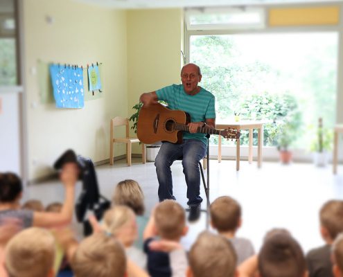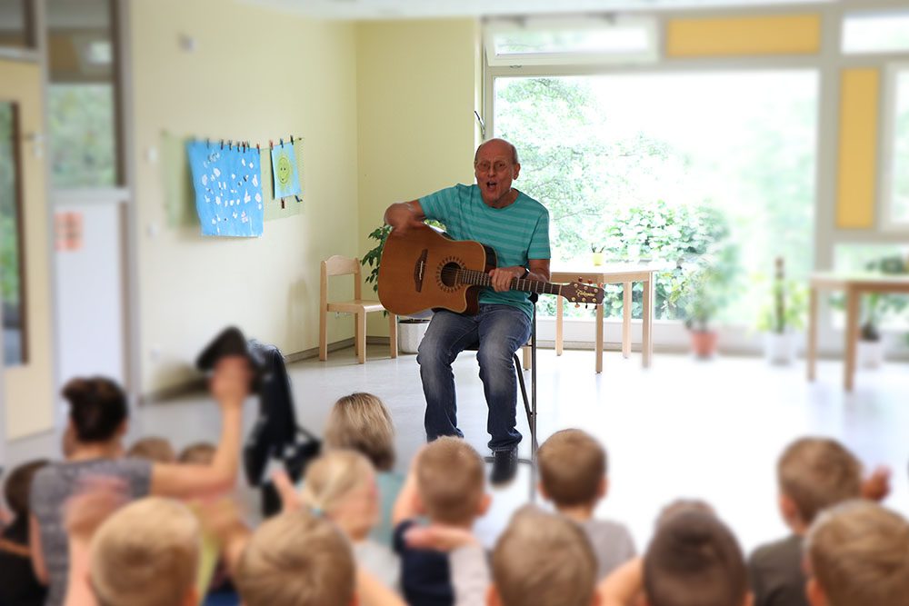Liedermacher Jürgen Denkewitz aus Leipzig brachte mit seiner musikalischen Mitmach-Reise die Kinderaugen zum Strahlen.