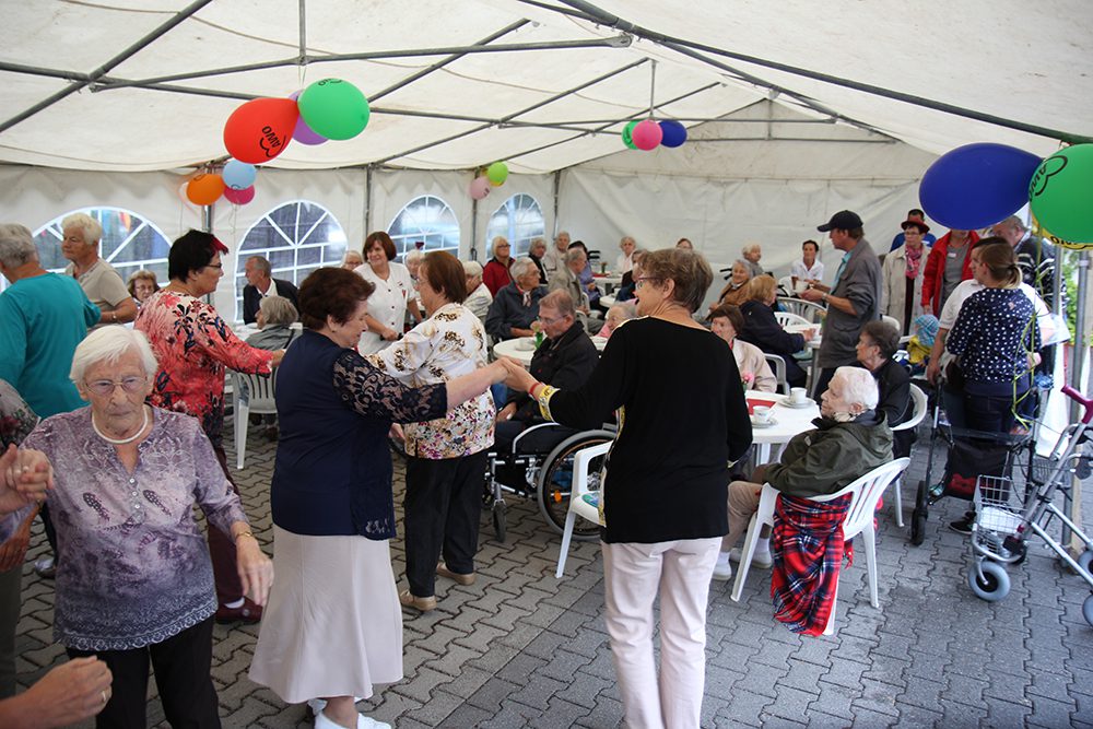 Der Nachmittag stand ganz im Zeichen eines Senioren- und Familienfestes. Neben Kaffee und Kuchen war die Seniorentanzgruppe mit Freude im Einsatz. Das Spielmobil des Kreissportbundes und das Kinderschminken wurde rege genutzt. Ein Beratungsstand des Vitakt Hausnotrufes, die Apotheke Wasserberg und auch Studenten der TU Bergakademie Freiberg vom Verein „Enactus“ waren vor Ort, um ihre Angebote zu präsentieren. Sogar die Hunde Olli und Tasso ließen es sich nicht nehmen, einen Besuch bei den ihnen vertrauten Menschen abzustatten.