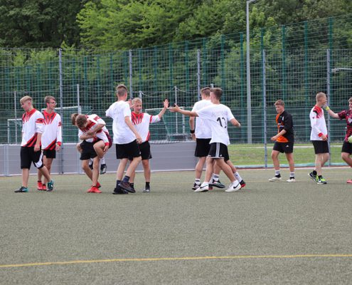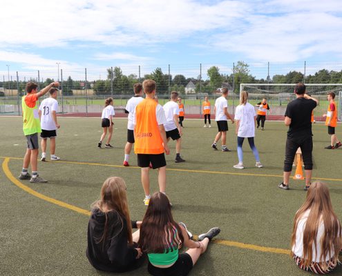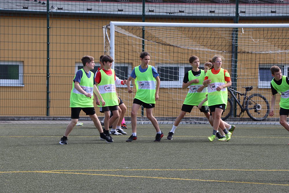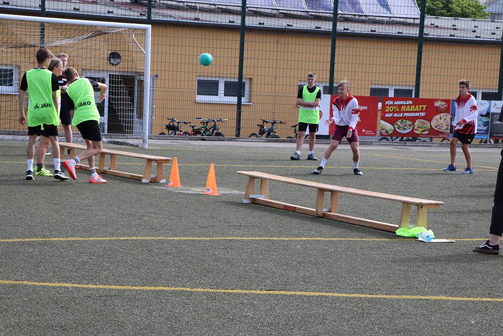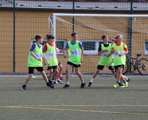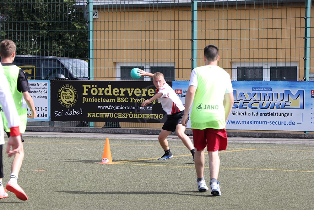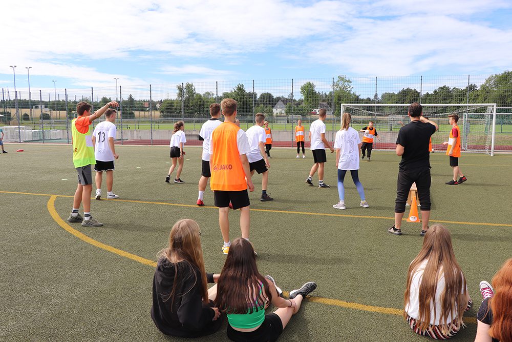 250 Schüler:innen der Klassenstufen 8 und 9 durften sich am Platz der Einheit in Freiberg in den Sportarten Völker- und Fußball duellieren. Dabei waren die Teams aus den Oberschulen Brand-Erbisdorf und der Freiberger Papst- von-Ohain-Schule sowie der Freien Gemeinschaftlichen Schule Maria Montessori am Ball.
