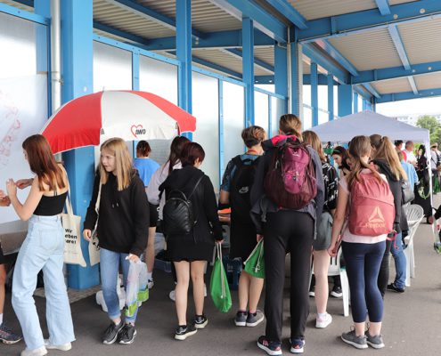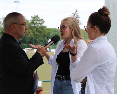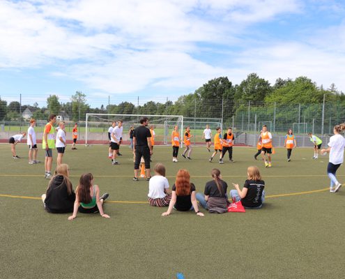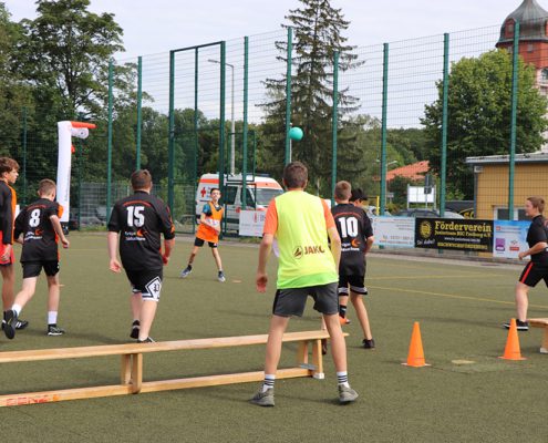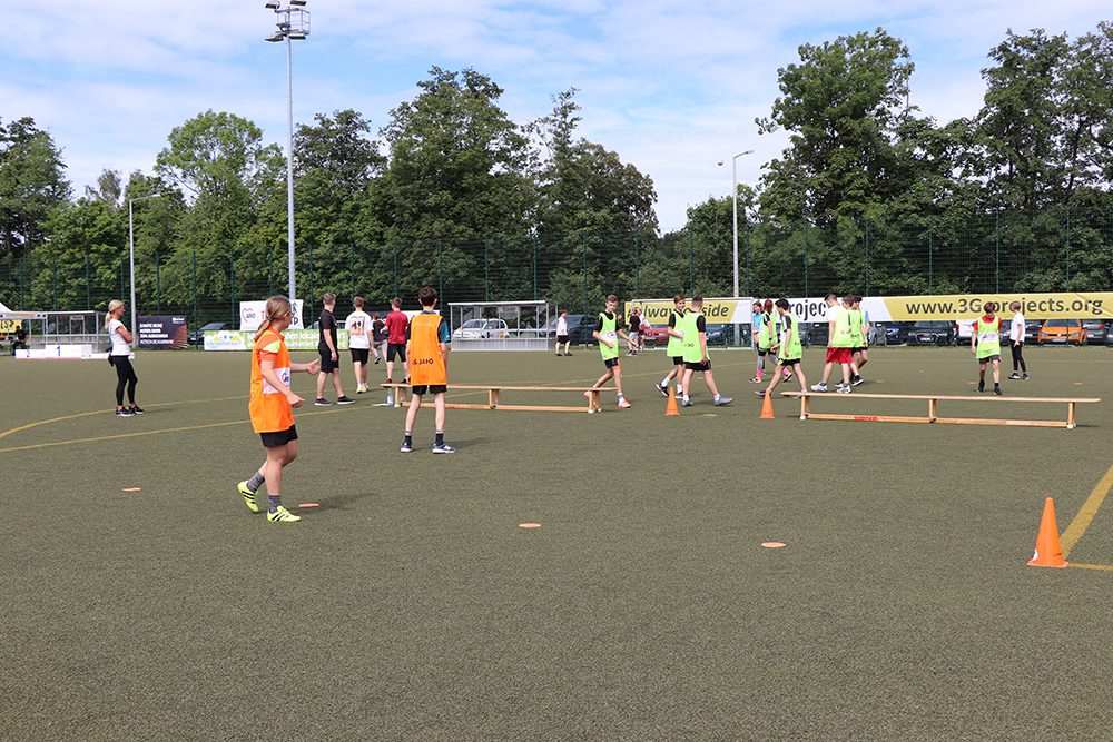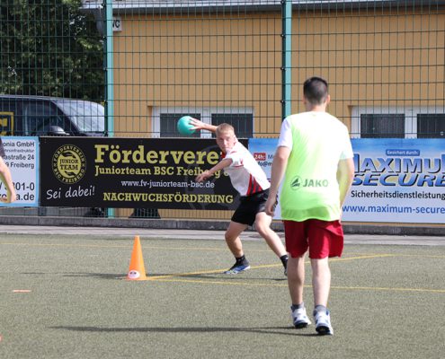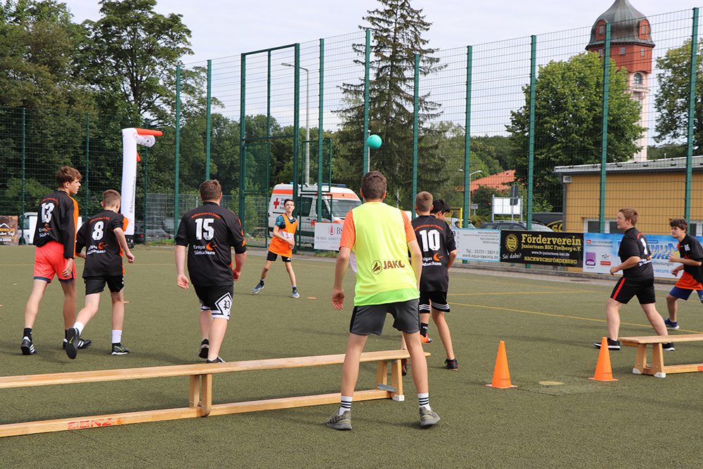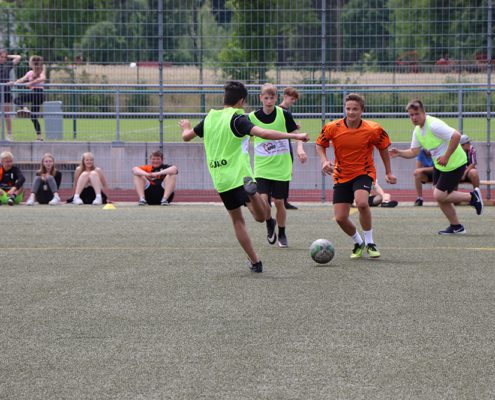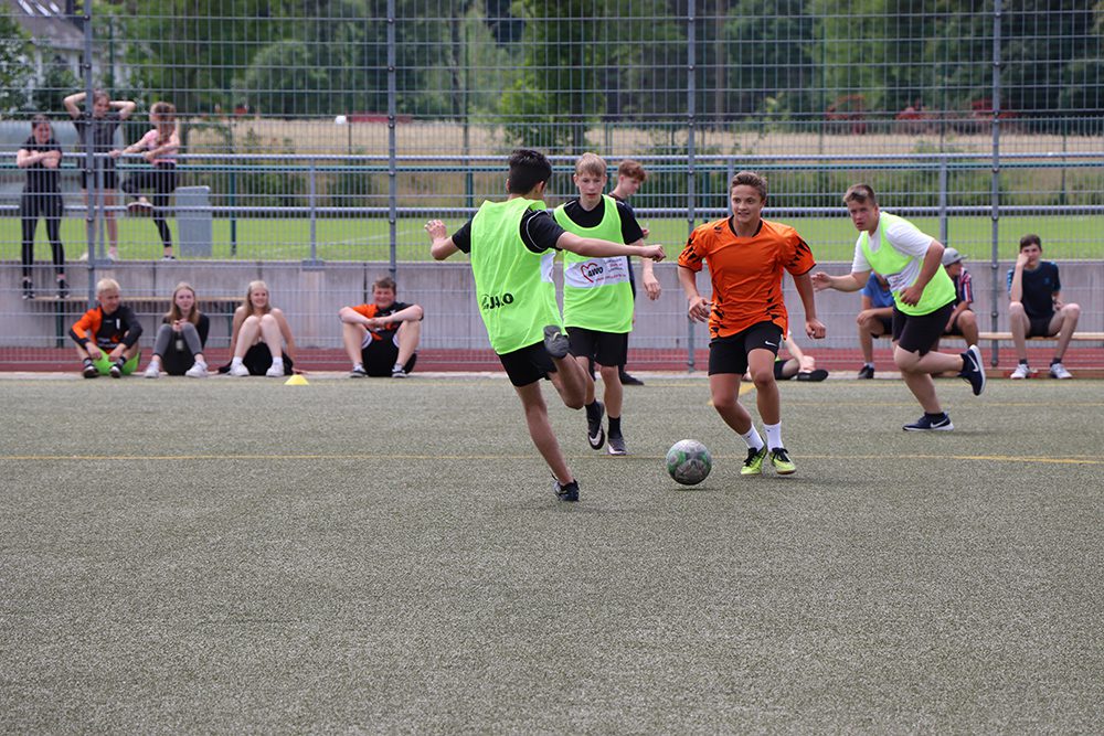 250 Schüler:innen der Klassenstufen 8 und 9 durften sich am Platz der Einheit in Freiberg in den Sportarten Völker- und Fußball duellieren. Dabei waren die Teams aus den Oberschulen Brand-Erbisdorf und der Freiberger Papst- von-Ohain-Schule sowie der Freien Gemeinschaftlichen Schule Maria Montessori am Ball.