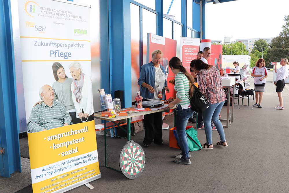 Um Schülerinnen und Schülern aus der Region die Möglichkeit zu geben, sich beruflich zu orientieren, waren branchenübergreifend 15 verschiedene Partnerunternehmen vor Ort, um ihre Ausbildungsmöglichkeiten zu präsentieren. Tino Rotter, Moderator dieser Veranstaltung, kam mit allen Unternehmen ins Gespräch und stellte die verschiedenen Möglichkeiten der Ausbildungen vor.