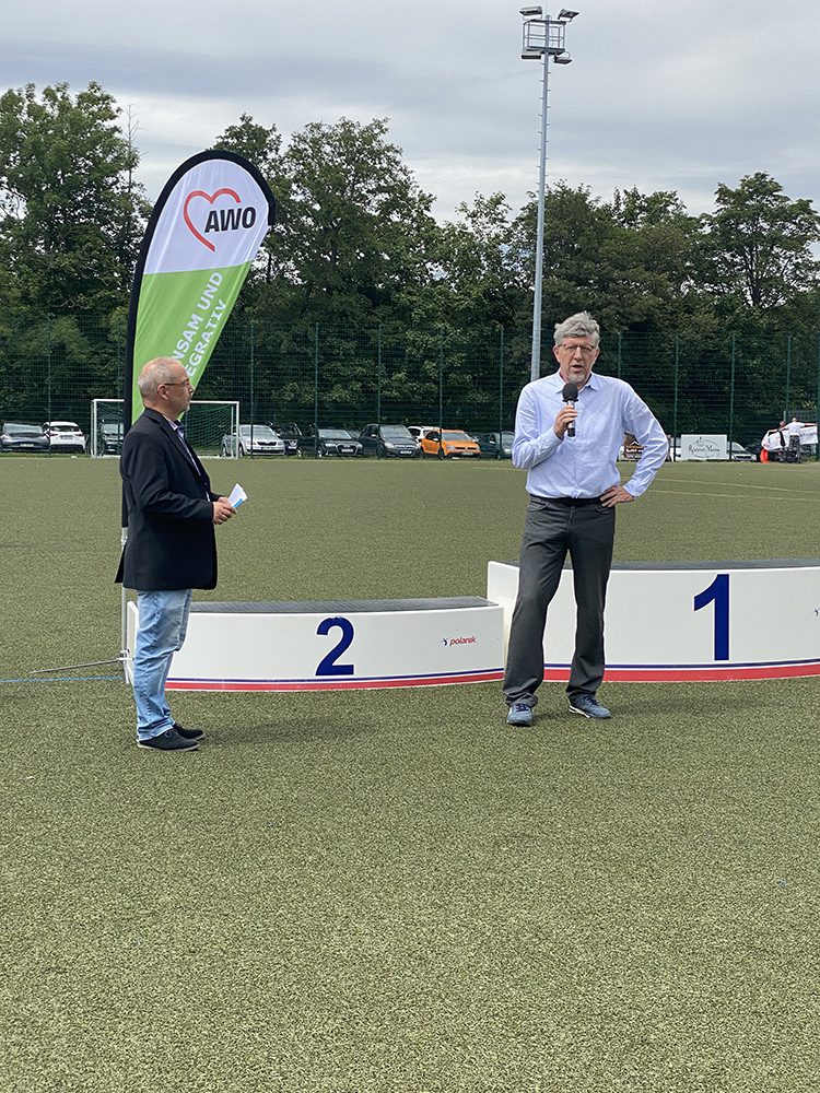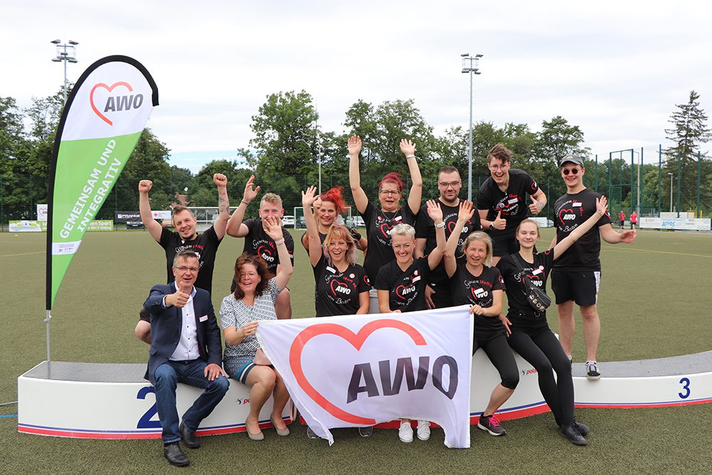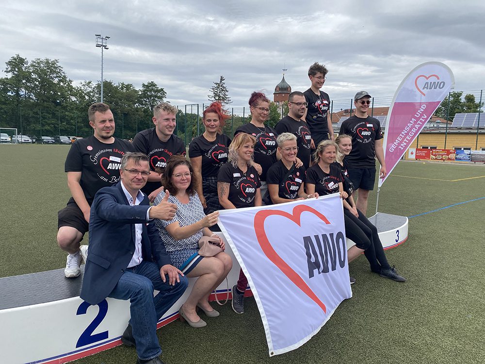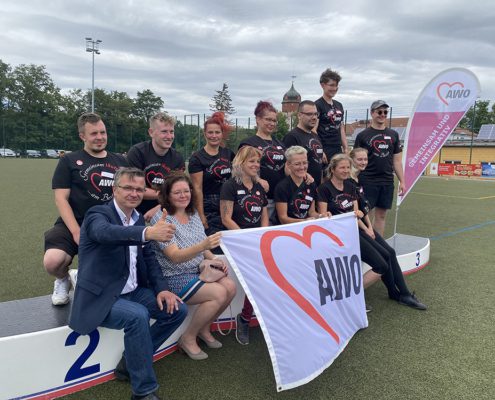 Unter diesem Motto stand der AWO-Team-Cup 2022, welcher erstmalig von AWO Kreisverband Freiberg e. V. initiiert wurde und ursprünglich schon vor 2 Jahren geplant war. Bei bestem Wetter eröffnete am 13.07.2022 Manuela Raschke, stellvertretende Vorstandsvorsitzende der AWO, die Veranstaltung. Philipp Preißler überbrachte in Vertretung des Oberbürgermeisters Grußworte seitens der Stadt Freiberg. Der Geschäftsführer der AWO Freiberg Jörg Lehmann wünschte allen Beteiligten gutes Gelingen und stellte das Thema der Nachwuchsgewinnung in ansässigen Ausbildungs-Unternehmen in den Fokus.