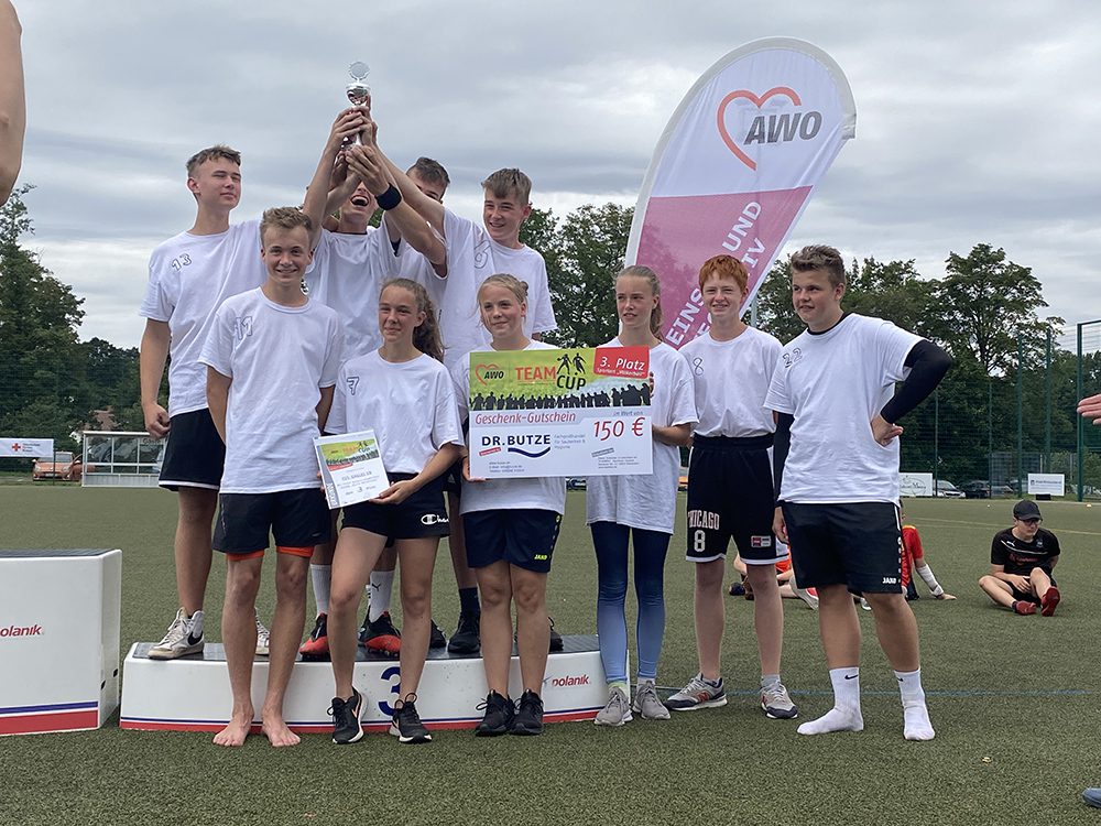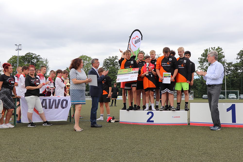 Wir bedanken uns recht herzlich bei allen beteiligten Partnerunternehmen, den Lehrern den Schüler:innen sowie den Schiedsrichtern. Ein großes Dankeschön geht auch an den Kreissportbund Mittelsachsen und dem Team von 3G-Pojects um Andreas Gartner. Danke auch an das gesamte AWO-Team!