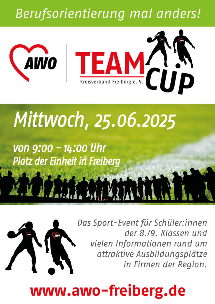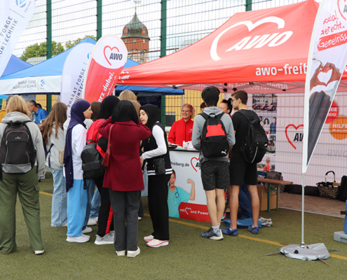 Der vierte AWO-Team-Cup war erneut ein großartiges Ereignis und begeisterte am Mittwoch, 25.06.2025 rund 450 Schülerinnen und Schüler aus der Region. Die Veranstaltung vereinte eine spannende Berufsorientierungsmesse mit einem sportlichen Wettbewerb, der den Teilnehmern nicht nur Einblicke in verschiedene Ausbildungsberufe bot, sondern auch Teamgeist und Fairplay förderte.