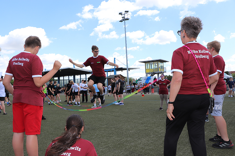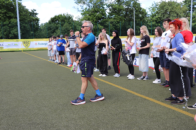 Der sportliche Charakter des Events wurde durch den beliebten Völkerball-Wettbewerb unterstrichen. Die Teams kämpften mit viel Einsatzgeist um die Hauptpreise. Besonders spannend war das Finale, bei dem die Klasse 8 der Oberschule Rechenberg-Bienenmühle den ersten Platz errang und einen Preis im Wert von über 450 € gewann. Das Team Alpha-Winkler der Oberschule Clemens Winkler belegte den zweiten Platz und erhielt einen Gutschein im Wert von 300 €. Den dritten Platz sicherte sich das Team Zetkin-Selbstläufer und können nun im Wert von 150 € im Sporthaus Haubold in Siebenlehn einkaufen.