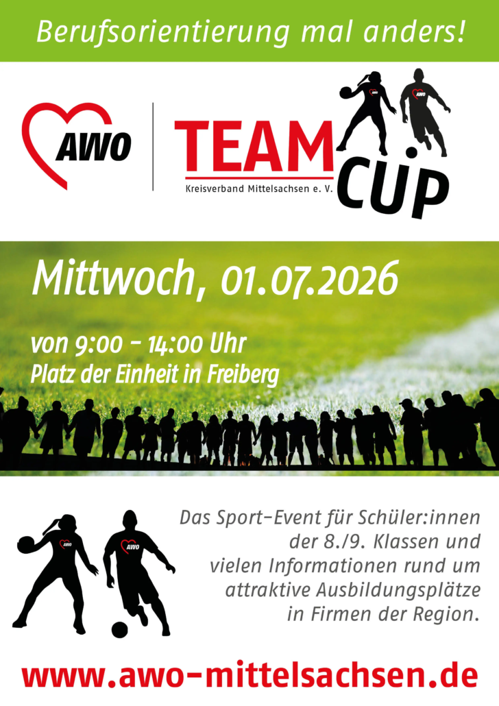 Der Arbeiterwohlfahrt Kreisverband Freiberg e. V. freut sich, den AWO-Team-Cup 2026 in seiner 5. Auflage anzukündigen – ein innovatives Event, welches die Berufsorientierung für Schülerinnen und Schüler in unserer Region fördert.