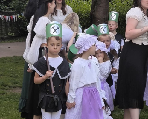 Am Nachmittag hatte das AWO-Erzieher*innen-Team wieder ein tolles Fest vorbereitet. Mit einem beherzten Sprung über das Arschleder wurden alle Gäste im Garten unserer Kita willkommen geheißen. Wir bedanken uns bei allen Helfern, den Eltern, der Hüttenknappschaft und vor allem dem Kita-Team für die liebevolle Ausgestaltung des „kleinen Bergstdtfestes“.