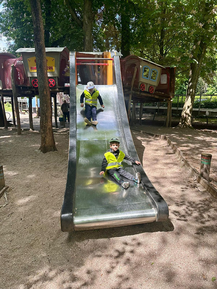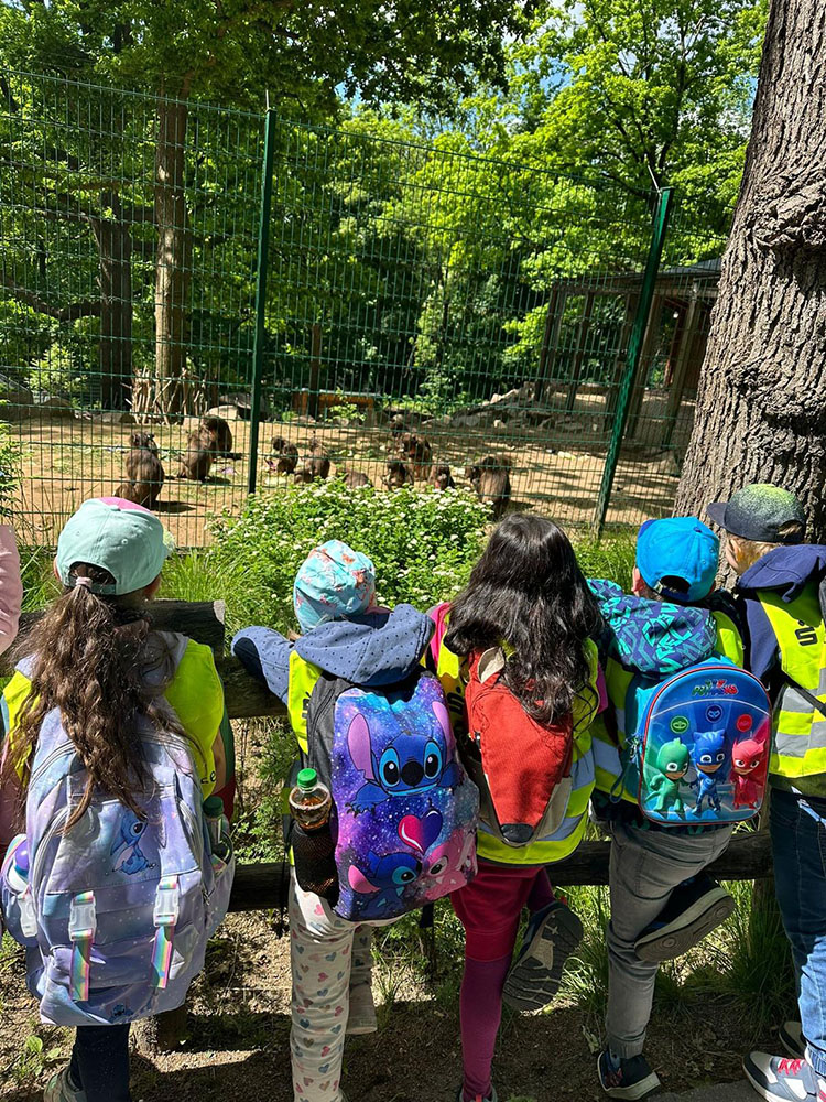 Im Tierpark angekommen, konnten die Schulanfänger zahlreiche Tiere aus nächster Nähe beobachten. Von Erdmännchen, Tiger bis hin zu niedlichen Ziegen – die Kinder waren begeistert von der Vielfalt der Tierwelt. Besonders viel Spaß hatten sie auf dem Eisenbahn-Spielplatz, der zum Spielen und Toben einlud. Hier konnten die kleinen Besucher gemeinsam Spaß haben.