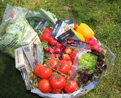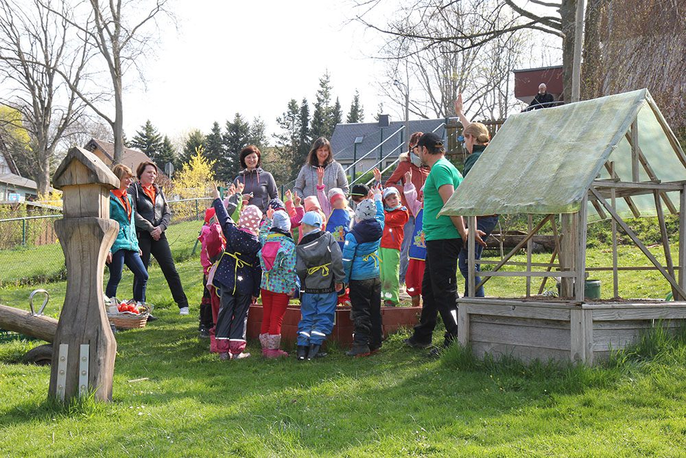 Doch das war noch lange nicht alles. Einen riesengroßen Gemüsekorb, weitere Pflanzen für die Beete sowie ganz viele Tomaten, Orangen, Äpfel und gesunde Knabbereien brachten die beiden Mitarbeiterinnen Anja Süß und Bianka Reinhardt vom EDEKA-Ziegler Brand-Erbisdorf an dem Tag in unsere Kita. Wir bedanken uns ganz herzlich und freuen uns über diese großzügige Gabe. Dies ist nicht selbstverständlich. Wir sind beeindruckt und sehr sehr dankbar.