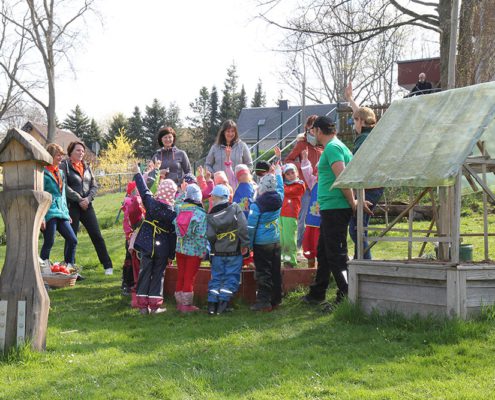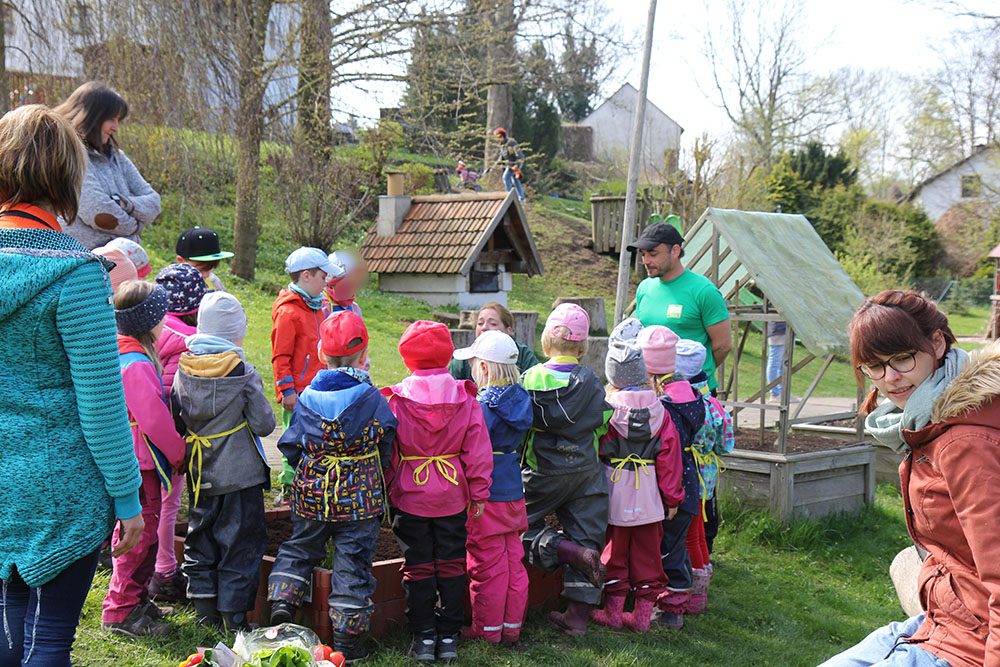 Unsere Vorschulkinder durften am 28.04.2022 mit Delia und Steve von der EDEKA-Stiftung „Gemüsebeete für Kids“ buddeln pflanzen, sähen und natürlich auch gießen.
