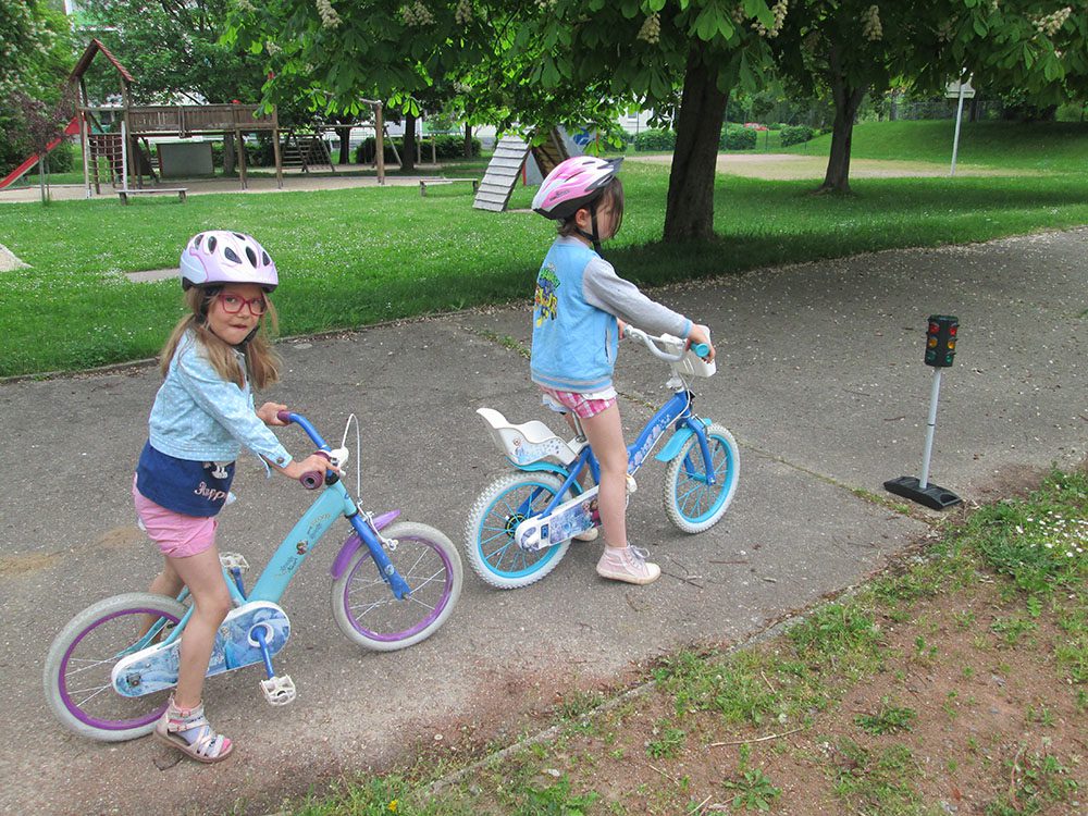 Da aufgrund von Corona die Prüfung nicht direkt von der Polizei abgenommen werden konnte, schlüpften unsere Kita-Mitarbeiterinnen in die Rolle der Prüfer.