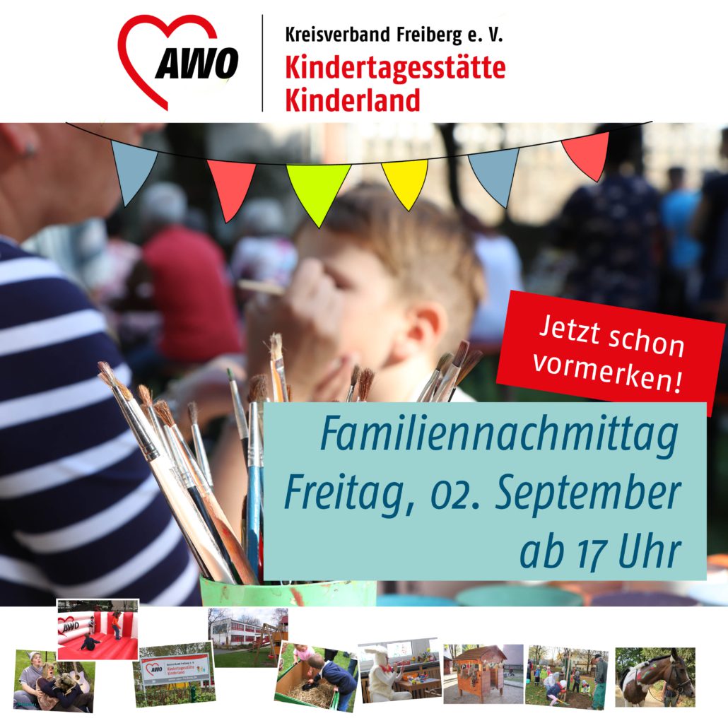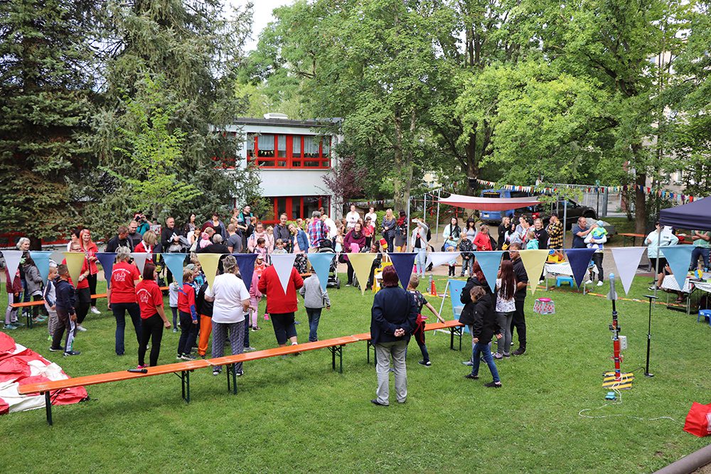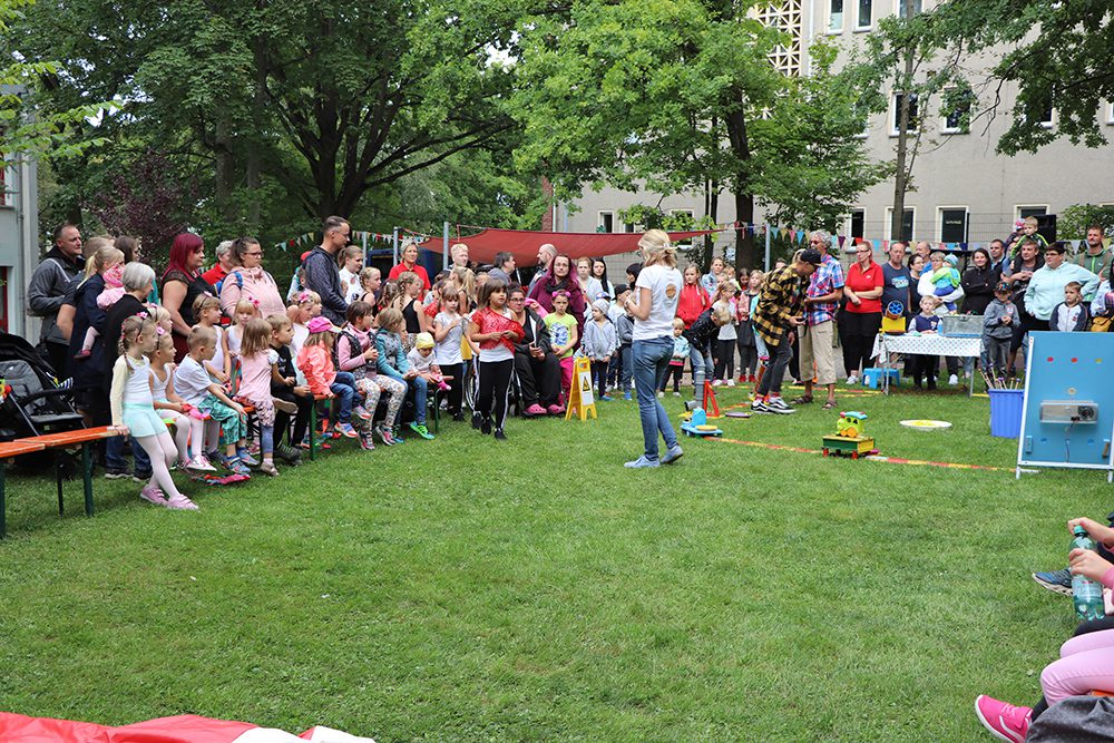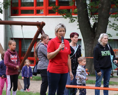 Schon von weitem konnte man sehen, dass am Freitag, dem 02. September im AWO-Kinderland gefeiert wurde. Bunte Wimpel schmückten das Areal. Zahlreiche Gäste waren in die Dr.-W.-Külz-Straße 16a in Brand-Erbisdorf gekommen, um mit uns das alljährliche Familienfest zu feiern.