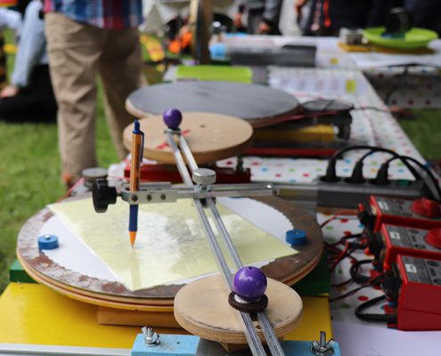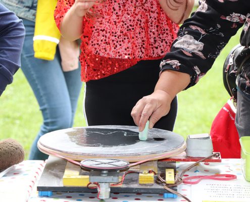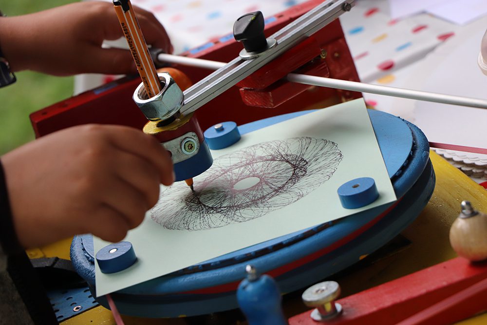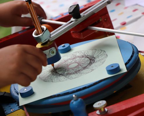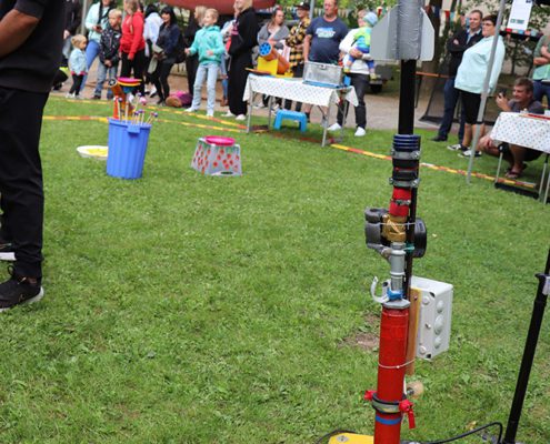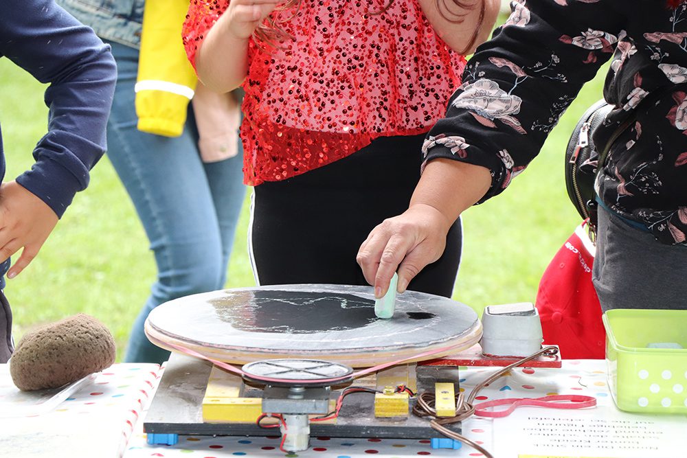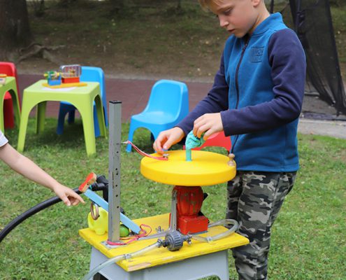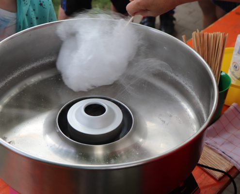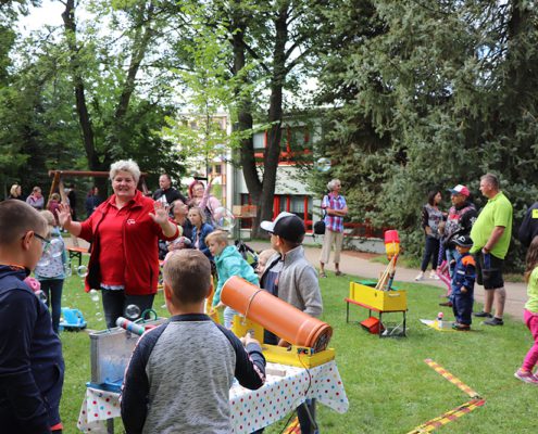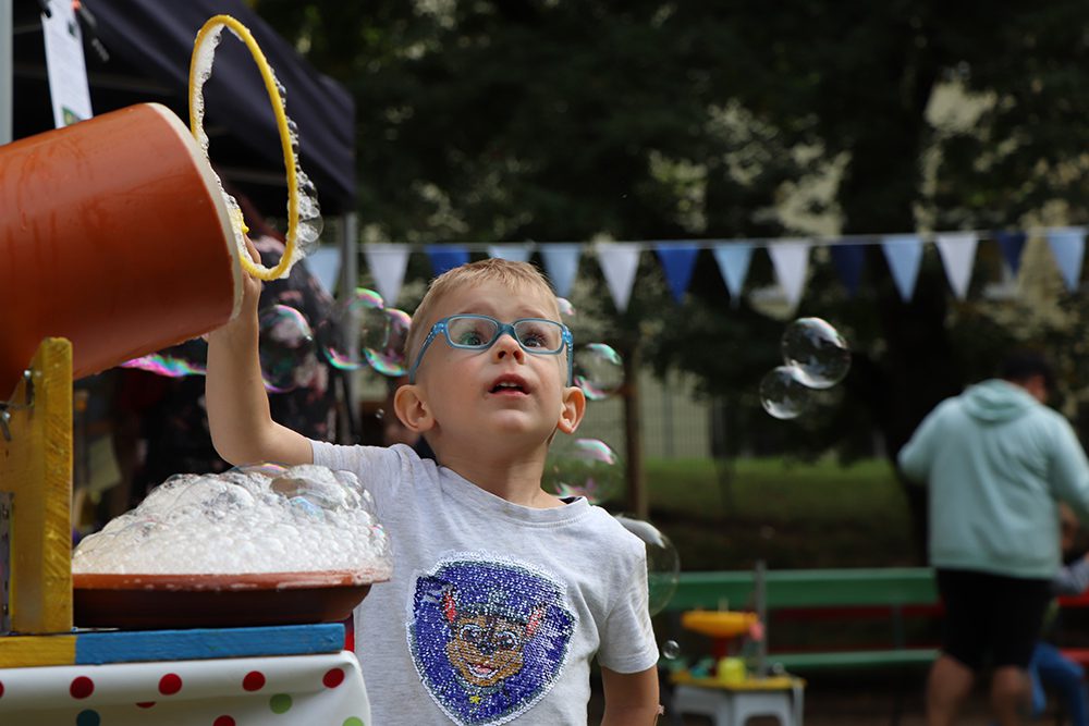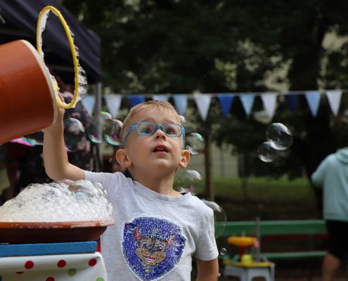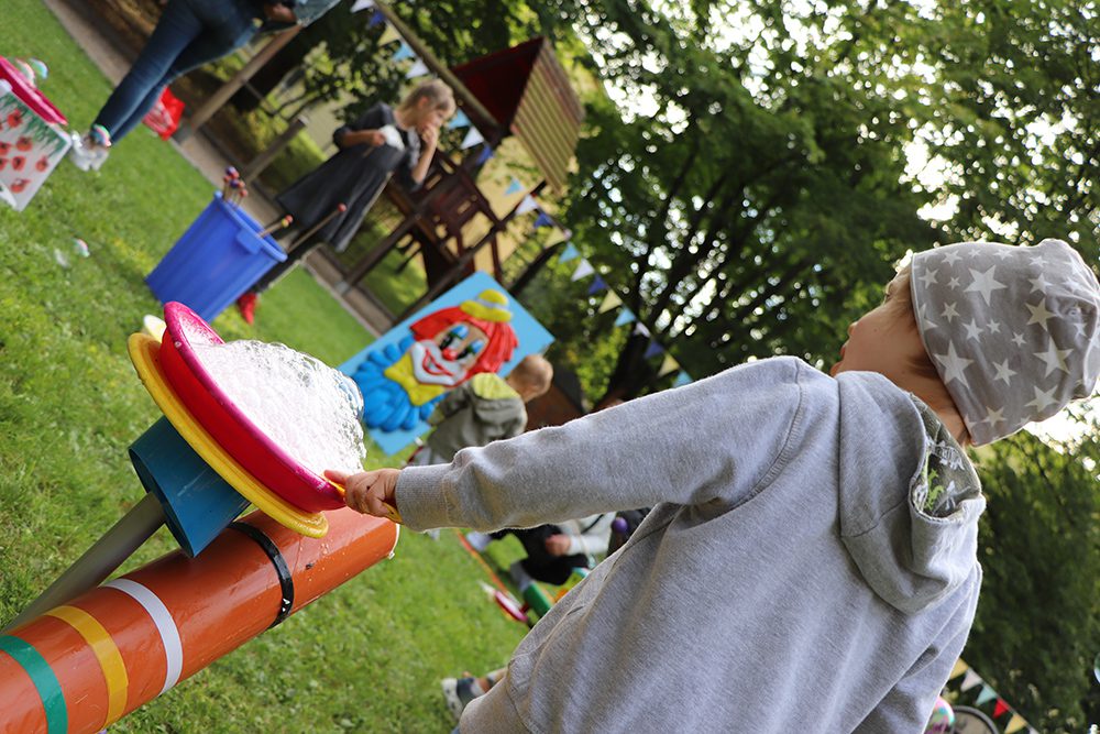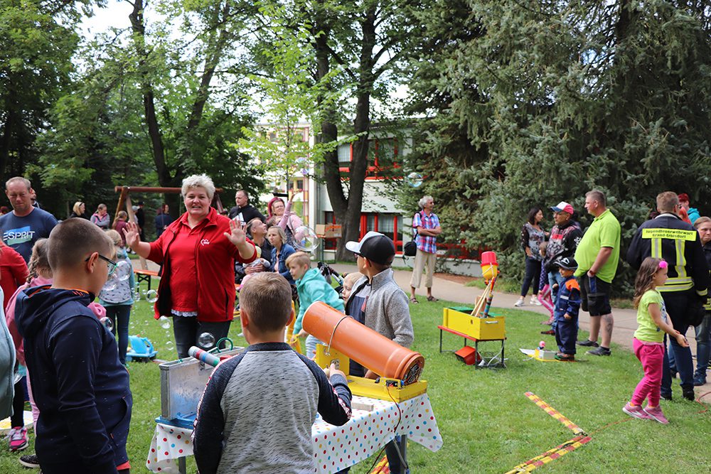 Sehr beliebt waren auch die verschiedenen Kreativangebote im Garten des Kinderlandes. Dass man Seifenblasen nicht nur mit dem Mund machen kann, zeigten die faszinierenden Seifenblasenmaschinen. Wir staunten ebenso über die physikalischen Experimente mit Luft und elektrischen Zeichengeräten.