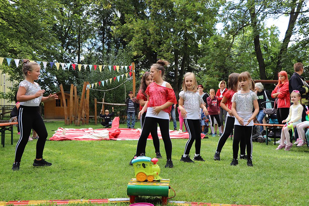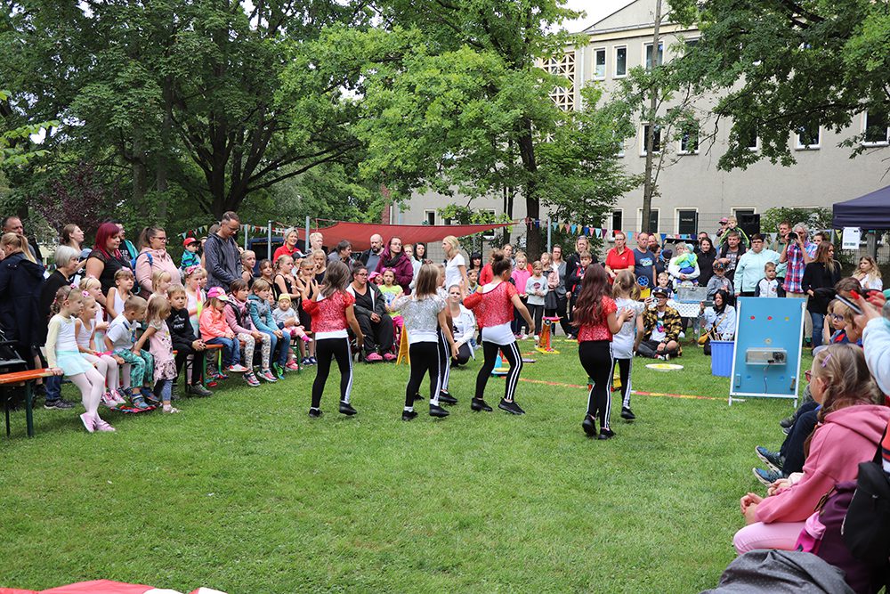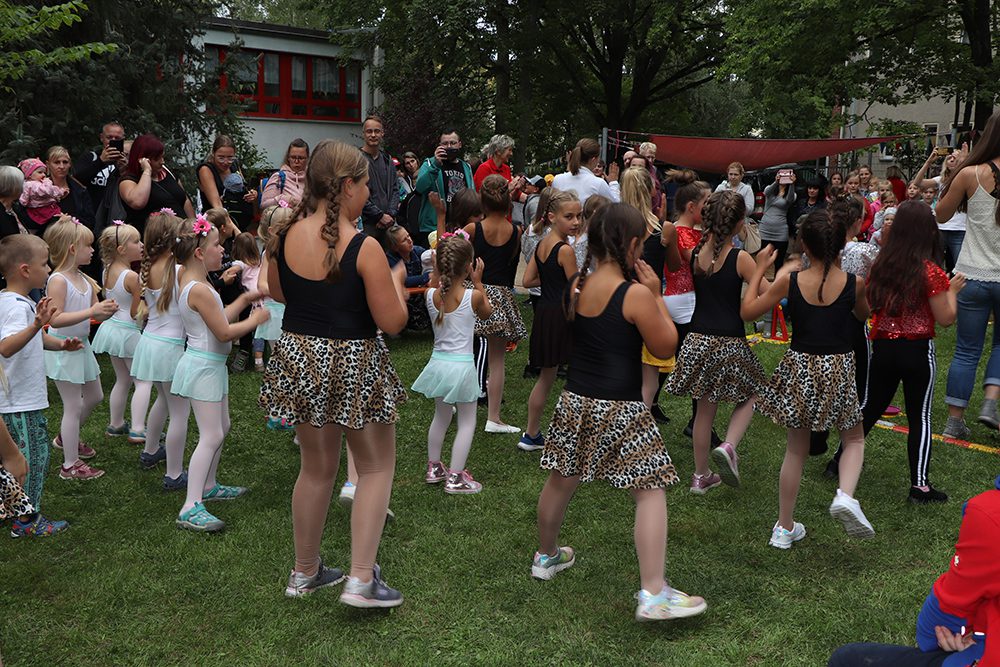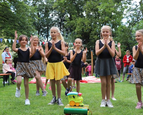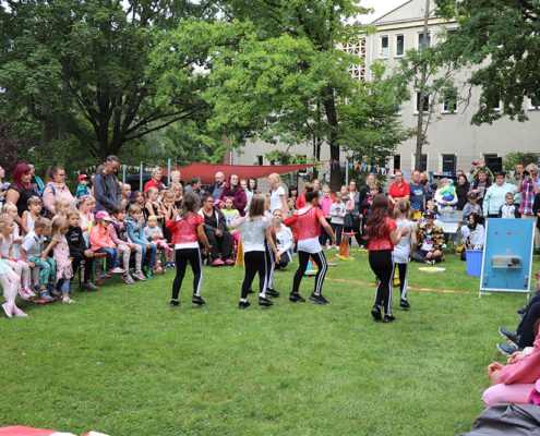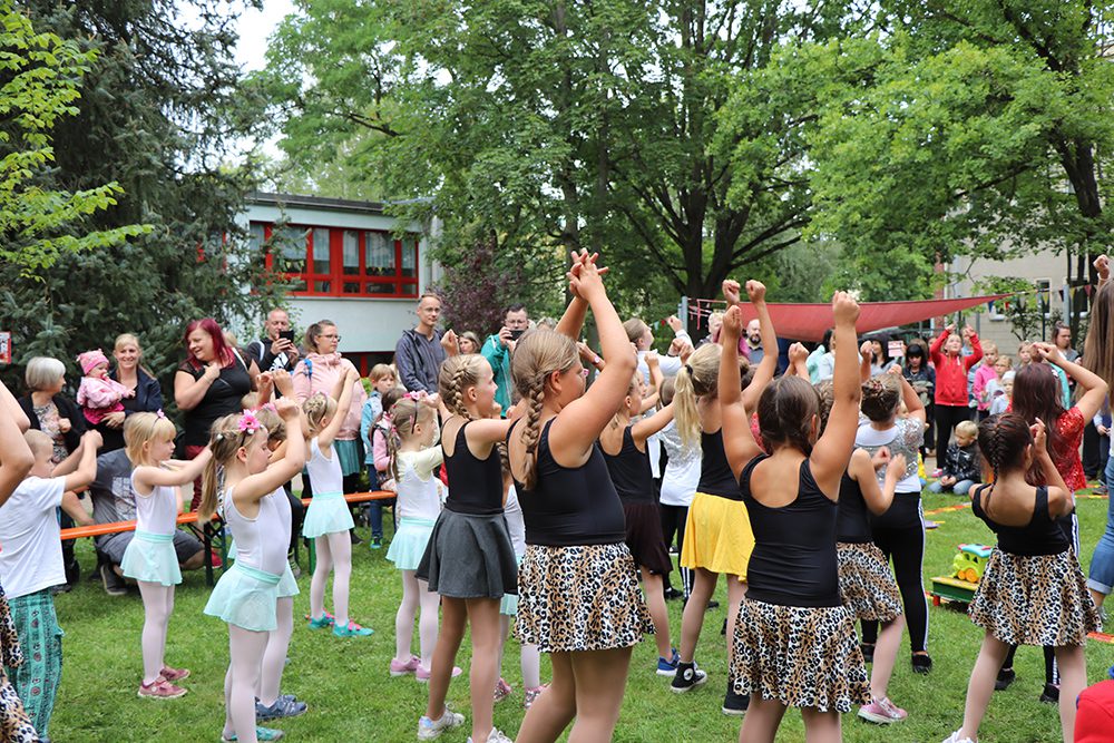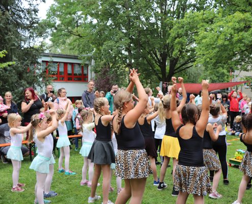 Kita-Leiterin Petra Morgenstern eröffnete das Fest und die Kinderland-Kinder präsentierten einige Lieder aus ihrem Repertoire. Die Tanzgruppe des TSV Elixier e.V. brachten die Gäste zum Staunen. Kleine Tänzerinnen zeigten verschiedene Choreographien und Tänze.