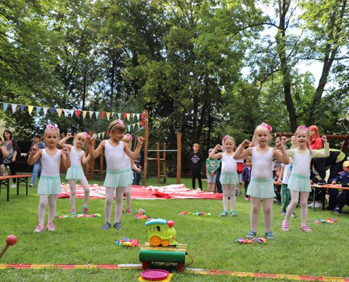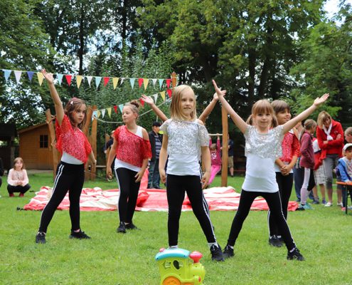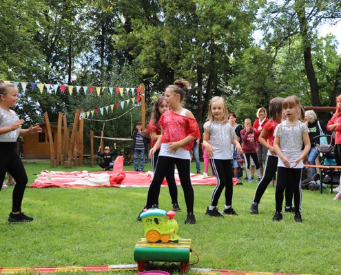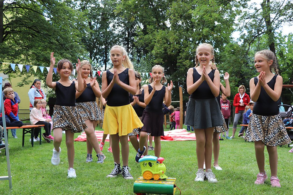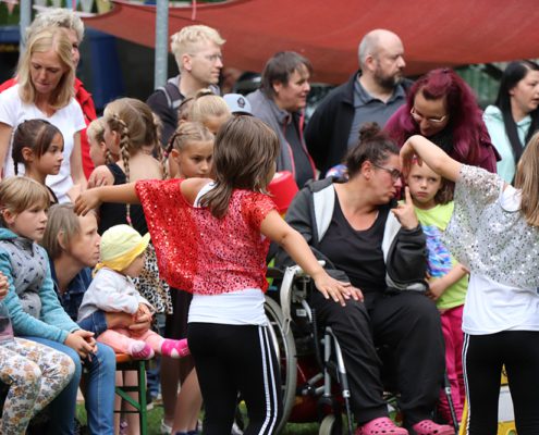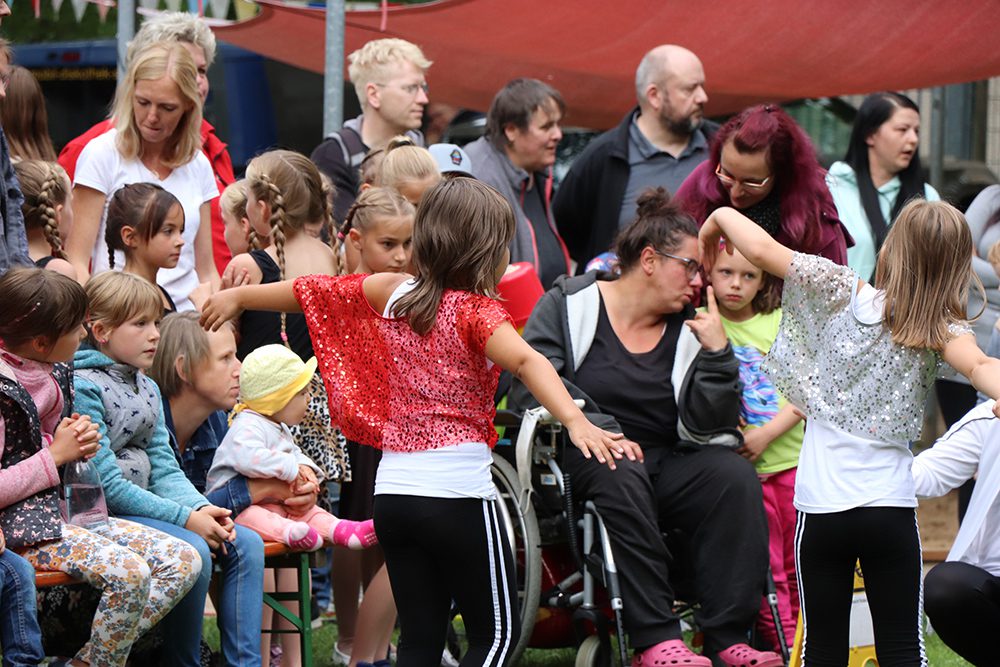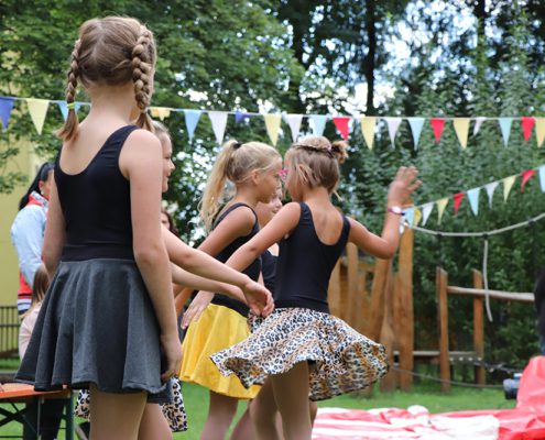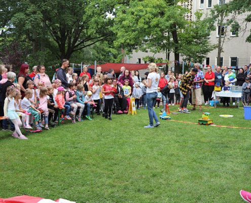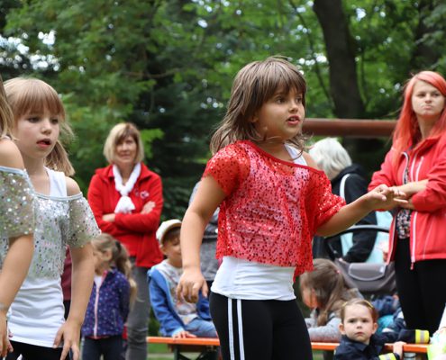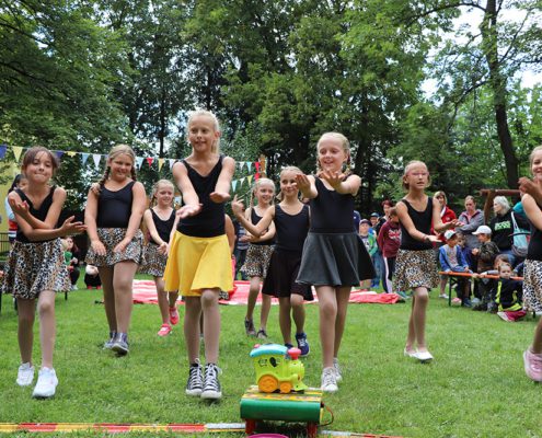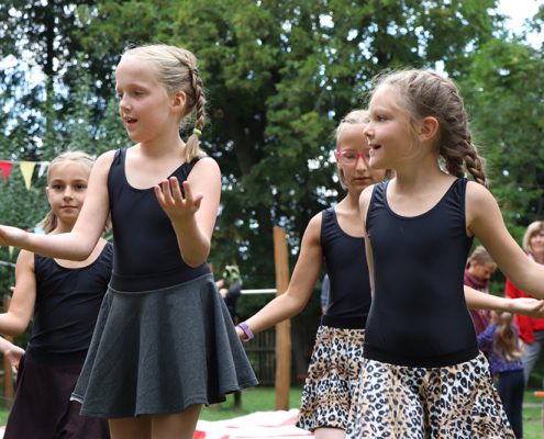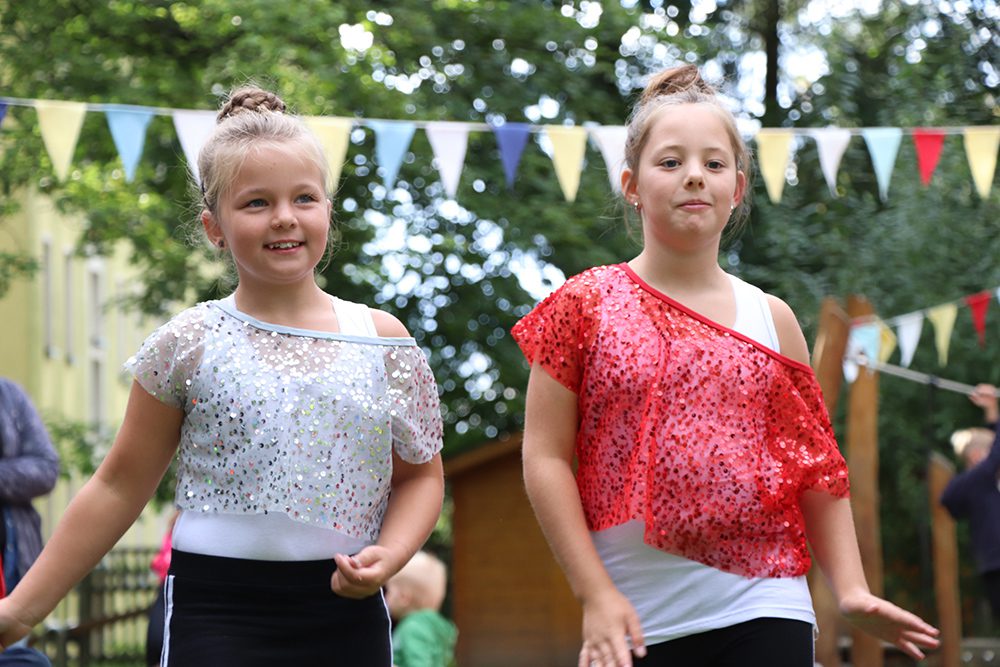 Kita-Leiterin Petra Morgenstern eröffnete das Fest und die Kinderland-Kinder präsentierten einige Lieder aus ihrem Repertoire. Die Tanzgruppe des TSV Elixier e.V. brachten die Gäste zum Staunen. Kleine Tänzerinnen zeigten verschiedene Choreographien und Tänze.