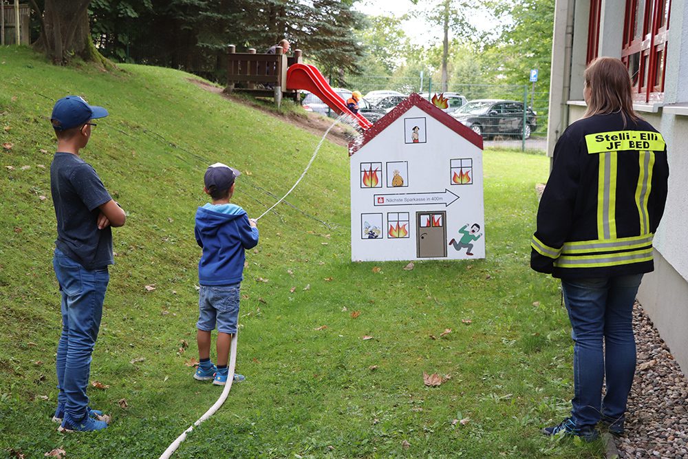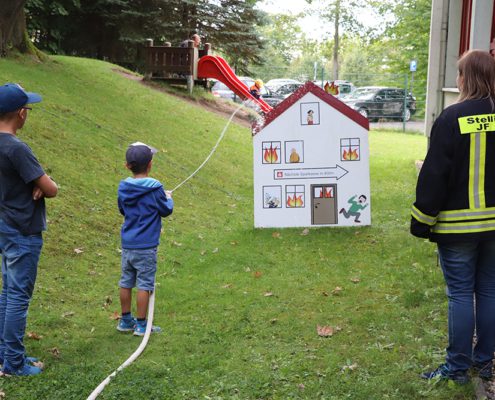 Gelöscht wurde ebenso fleißig, denn die Brander Jugendfeuerwehr war mit Manneskraft im Einsatz und so mancher erlebte den Traum eines echten Feuerwehrmannes.