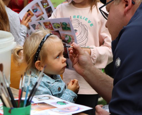 Das Jugend- und Freizeitzentrum war fleißig mit dem Kinderschminken beschäftigt und so verwandelten sich die Kinder in Windeseile in kleine Tiger & Co.