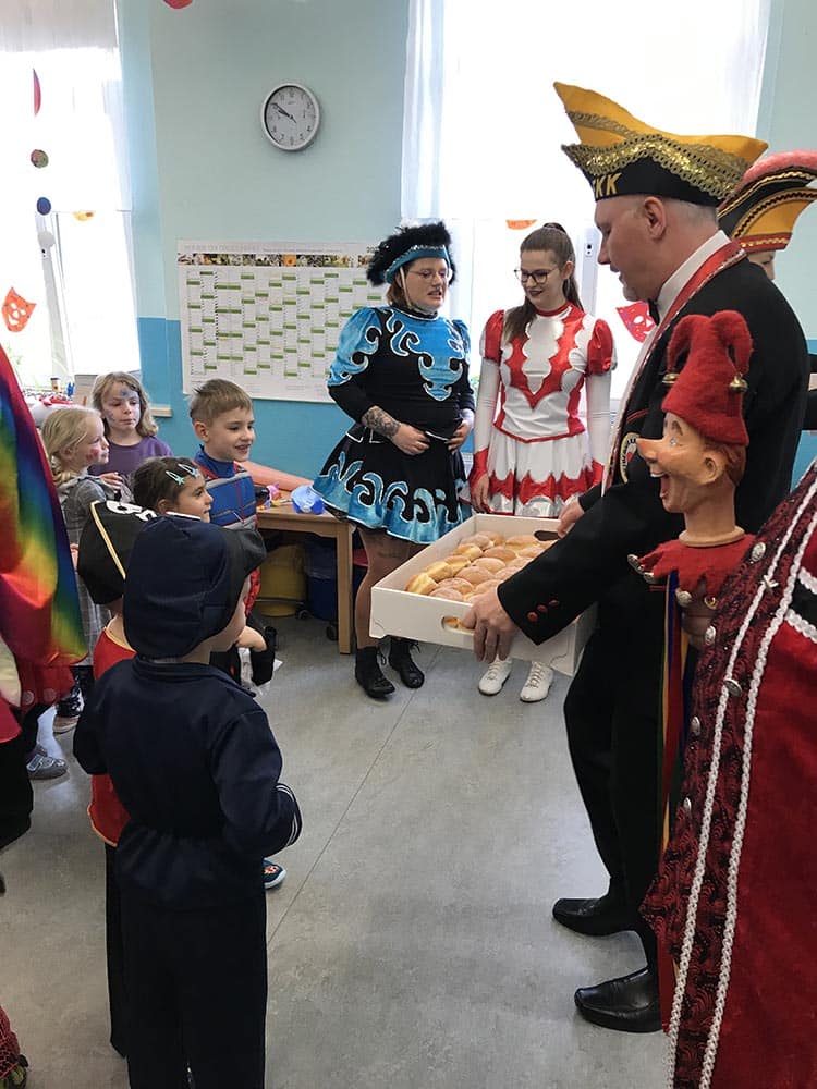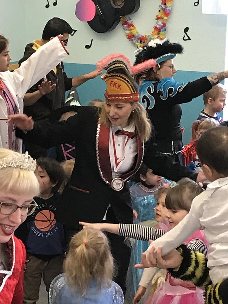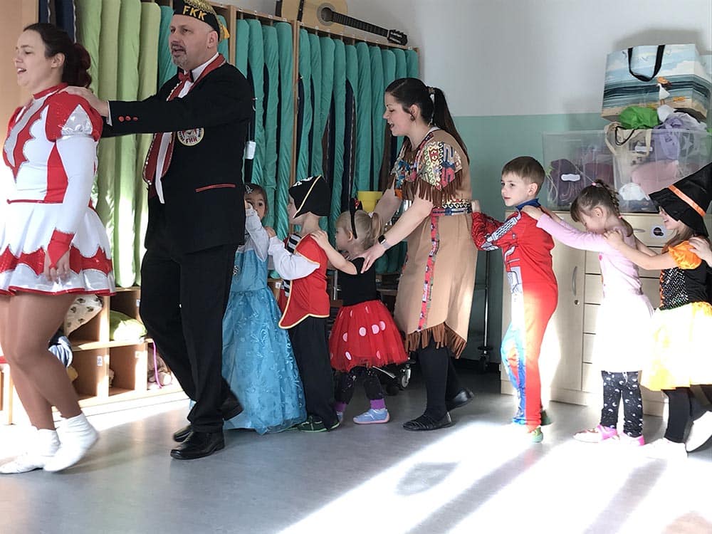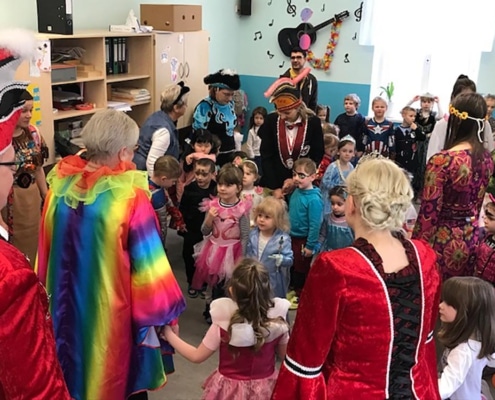 Das Prinzenpaar Melanie I. und Marko I. waren am Rosenmontag bei unseren Freiberger Bergstadtzwergen zu Besuch. In der Kindertagesstätte ging es wieder richtig bunt zu, denn Prinzessinnen, Piraten, Löwen und viele Kinder in tollen Kostümen waren im Karnevalstimmung. Die Funken des Freiberger Karneval Klubs brachten als Dankeschön leckere Pfannkuchen mit. Heide Hinkel brachte die vielen Kinder und Erwachsenen mit unzähligen kräftigen „Glücki-Glücki-auf-auf“ in Stimmung. Vielen Dank all den fleißigen Organisatoren!