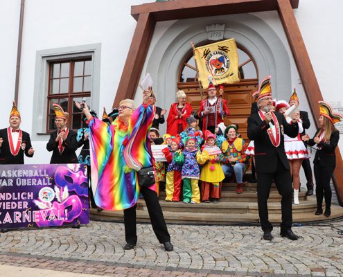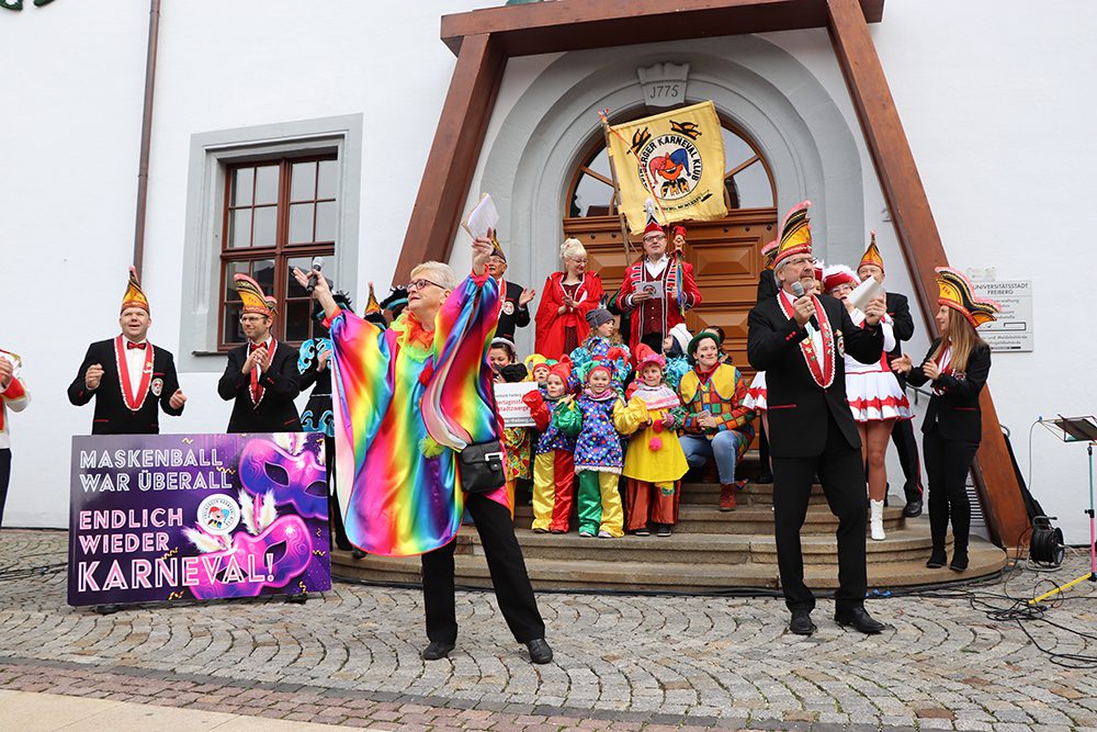 „Glücki Glücki Auf Auf!“ hörte man zum heutigen Karnevalsauftakt auf dem Freiberger Obermarkt. Dort eröffnete der Freiberger Karnevals-Klub die diesjährige Saison.