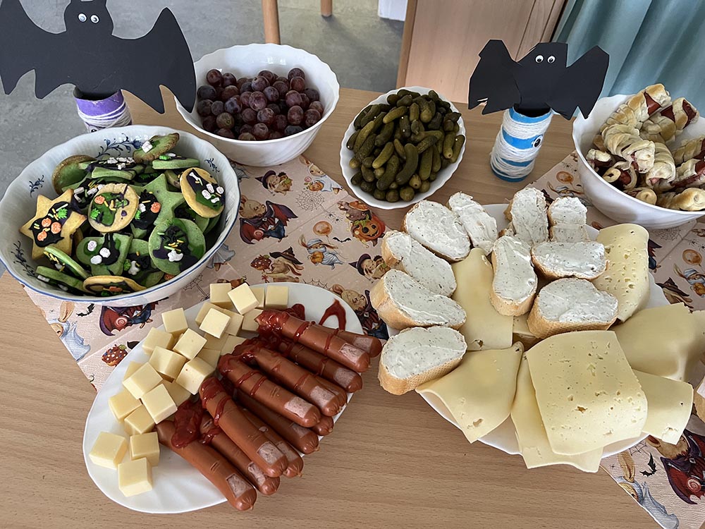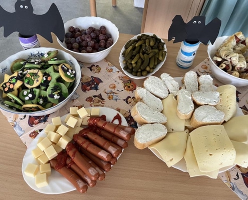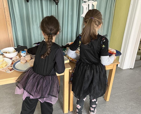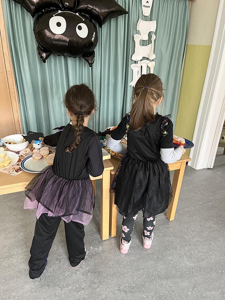 Auch bei unseren Bergstadtzwergen wurde dieses Jahr Halloween gefeiert. Mit gruselig-kreativen, aber vor allem sehr leckeren Snacks und bei guter Musik trafen sich Hexen, Teufel und Mumien in den geschmückten Gruppenzimmern unserer Villa. Groß und Klein verbrachten einen tollen Tag miteinander. Vielen Dank für die fleißigen Hände, die alles vor-und nachbereitet haben!