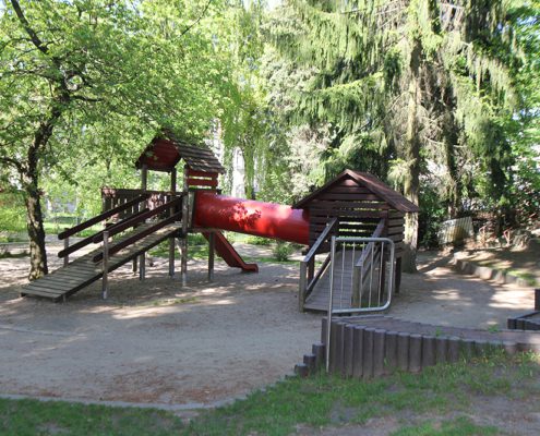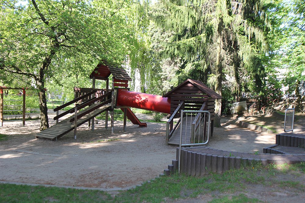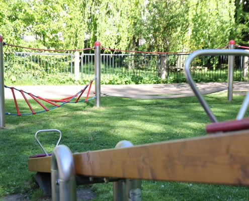 Der großzügige Außenbereich wurde bewusst grün und naturnah gestaltet: Bäume und Sträucher laden zum Entdecken der Natur ein und bieten den Kindern im Sommer einen angenehmen Sonnenschutz. Verschiedene Spielmöglichkeiten oder Trainingsgeräte (z.B. zur Schulung des Gleichgewichtsinns) fördern die ganzheitliche Entwicklung der Kinder. Unsere Fahrzeugstrecke, die durch das Außengelände führt und sich durch verschiedene Untergründe und Steigungen auszeichnet, animiert die Kinder noch einmal zusätzlich sich zu bewegen.