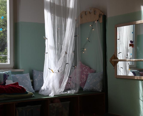 Ein wichtiger Baustein in unserem pädagogischen Ansatz ist die Eingewöhnung der Kinder, in den für sie neuen Lebensraum – die Kita. Nachdem die vertraglichen Grundlagen zwischen den Personensorgeberechtigten und uns geregelt sind, planen die Eltern und wir den individuellen Ablauf und die voraussichtliche Dauer der Eingewöhnung. Orientiert an den Berliner und Münchner Modellen finden in erster Linie die Bedürfnisse des Kindes Beachtung. Natürlich berücksichtigen wir bestimmte Lebensumstände oder berufliche Verpflichtungen der Eltern. Gemeinsam finden wir einen Weg des Ankommens für die Kinder in unserer Kita.
