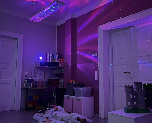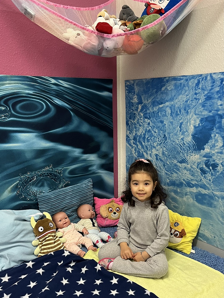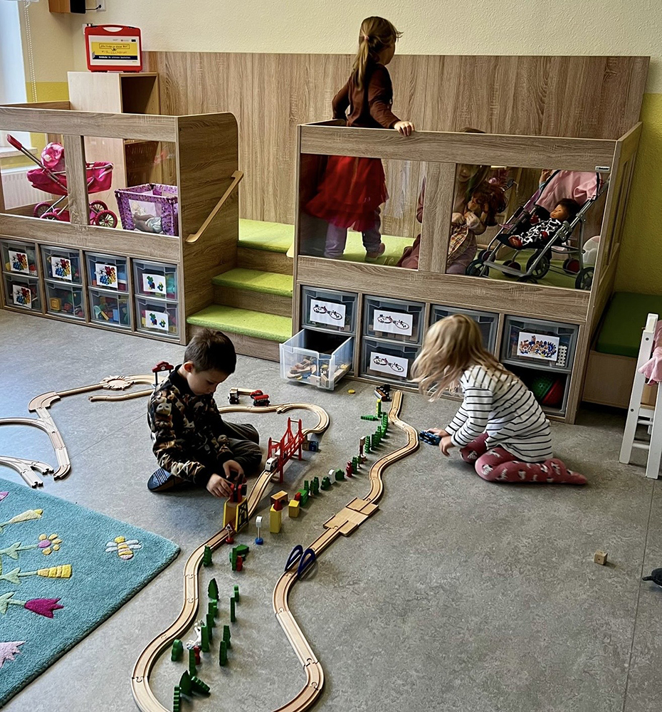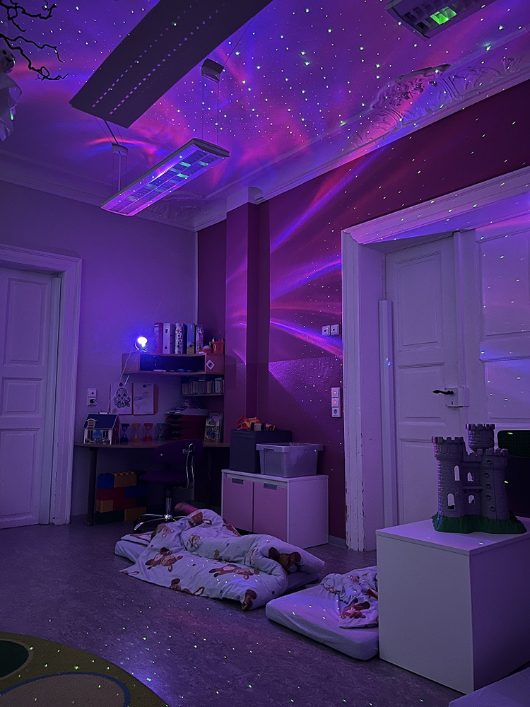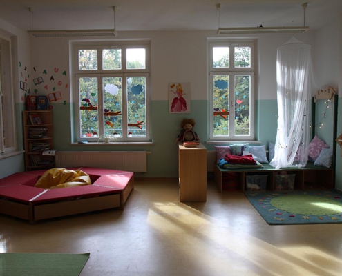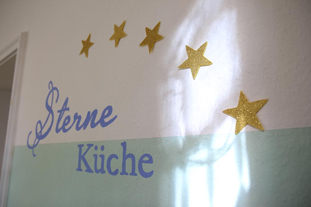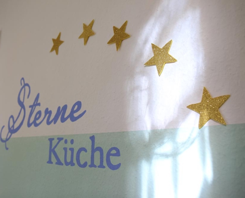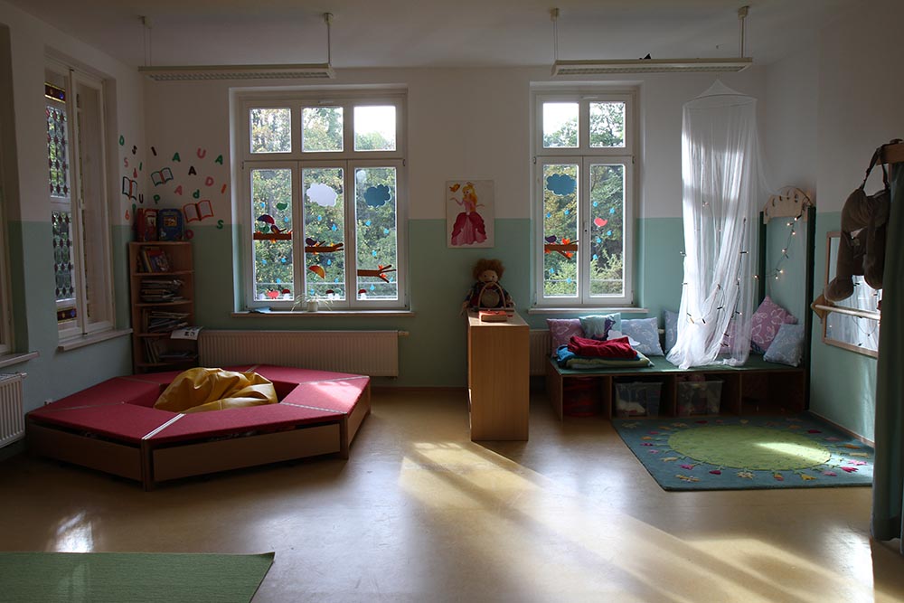 Im ausgebauten Souterrain befinden sich für die Kinder ein Entspannungsraum, ein Matschraum und eine Kinderküche. Diese ermöglicht den Kindern erste Erfahrungen im Umgang mit dem Zubereiten von Speisen und trägt zur gesunden Ernährung bei, auf welche wir in unserer Einrichtung großen Wert legen.