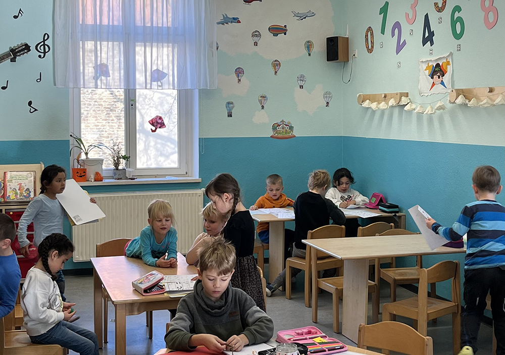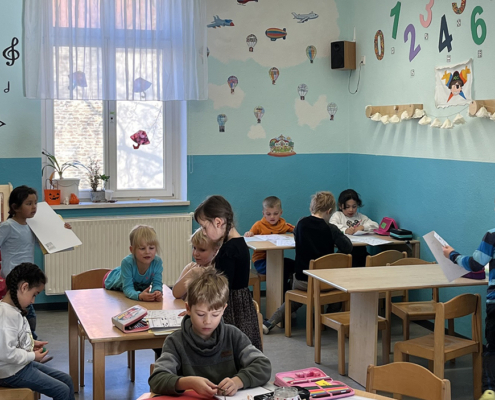 Ab dem Kindergartenjahr 2025/2026 wollen wir einen Englisch-Tag einführen. Die Kinder werden spielerisch an eine Fremdsprache herangeführt. Alltagsbezogene Themen werden hier aufgegriffen. Beginnend mit der Begrüßung, dem Zählen der Gruppenstärke über die Farben der Kleidung wird die Sprache in den Gebrauch einfließen. Natürlich wird der Entwicklungsstand eines jeden Kindes dabei berücksichtigt.