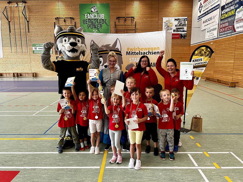 Die Kindertagesstätte Bergstadtzwerge durften am 17.09.2024 am Kita-Team-Cup antreten und holten sich sogar den Titel. Glücklich und mit dem Pokal in der Tasche konnten die Kids aus der Freiberger Schillerstraße 5 dieses sportliche Highlight beenden. Herzlichen Glückwunsch! Wir sind stolz, derartige Sportskanonen in unseren Reihen zu wissen!