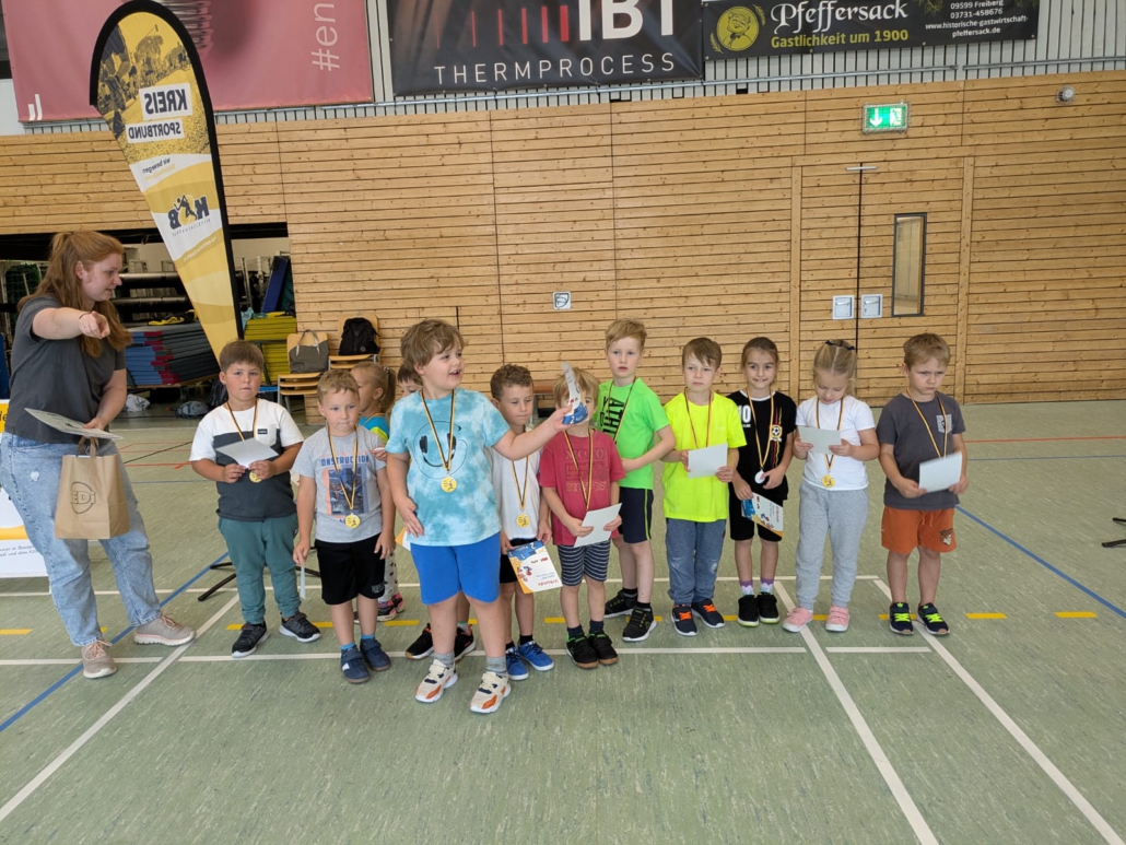 Am 12.09.24 beteiligten sich 16 Kitas an dem Sportevent in Freiberg, darunter unser „Kinderland“ und die „Langenauer Spatzen“. Es gibt jedes Jahr vier kleine sportliche Wettbewerbe, deren Ergebnisse am Ende die Platzierungen der Kindertageseinrichtungen aus Mittelsachsen festlegen. Unsere Kitakinder übten schon Wochen vorher für die Disziplinen Schlagballweitwurf, Hindernislauf, Rollerrennen und „Biathlon“. Sehr stolz nahmen sie am Ende ihre Medaillen und Urkunden entgegen.