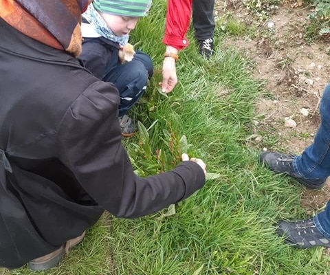 Unsere Umgebung ist voll mit Kräutern, die sich für Tee, Kräuterbutter, Kosmetikprodukte, die Hausapotheke oder auch einfach so zum Naschen eignen. Doch nur wer mit offenen Augen über die Wiesen und Felder streift, wird sie entdecken. Durch die Erläuterungen unserer Mitarbeiterin Frau Becker waren schnell Missverständnisse über Aussehen oder Anwendung aus dem Weg geräumt.
