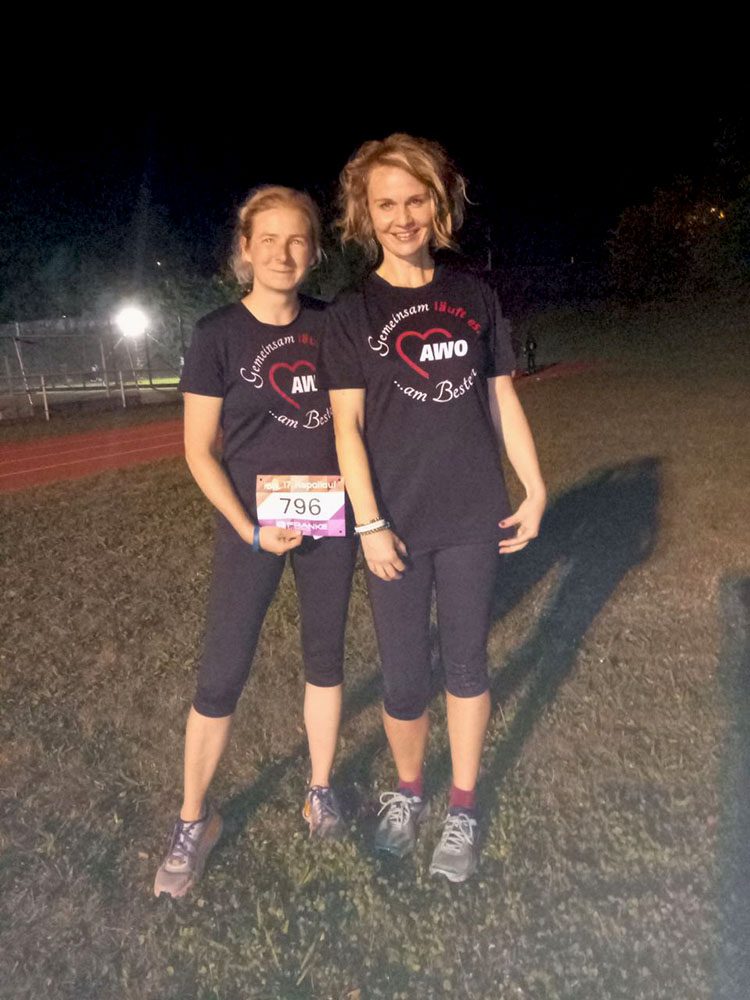 Ulrike, Jan, Susan und Olena liefen gemeinsam weit mehr als 200 Runden. Auch mitlaufende Familienangehörige präsentierten sich im AWO-Shirt.
