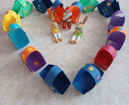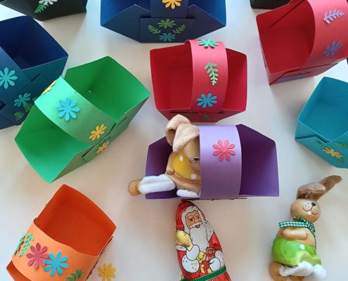 In zwei Etappen wurden mit und für alle Kinder, die durch uns in der Außenstelle Burgstädt im Rahmen einer sozialpädagogischen Familienhilfe oder Erziehungsbeistandschaft begleitet werden, Osterkörbchen gebastelt. Auch die Eltern haben fleißig mitgebastelt. Es war bunt und hat Spaß gemacht. Und jetzt müssen die Körbchen alle gefüllt werden, bevor die nächste Etappe unseres gemeinsamen Osterprojekts folgt.