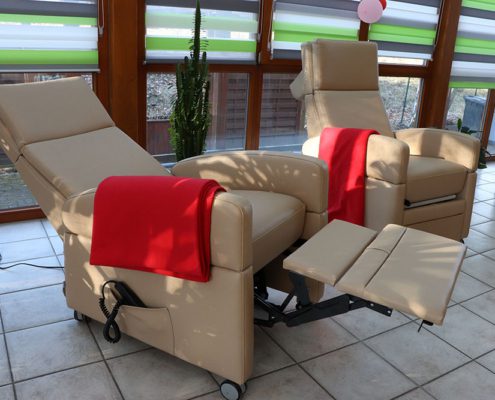 12 neue Pflegesessel wurden nun auch in unserer AWO-Tagespflege am Forstweg, welche sich im Erdgeschoss der im Park der Generationen angrenzenden Villa auf dem Wasserberg befindet, angeschafft.