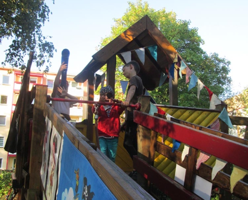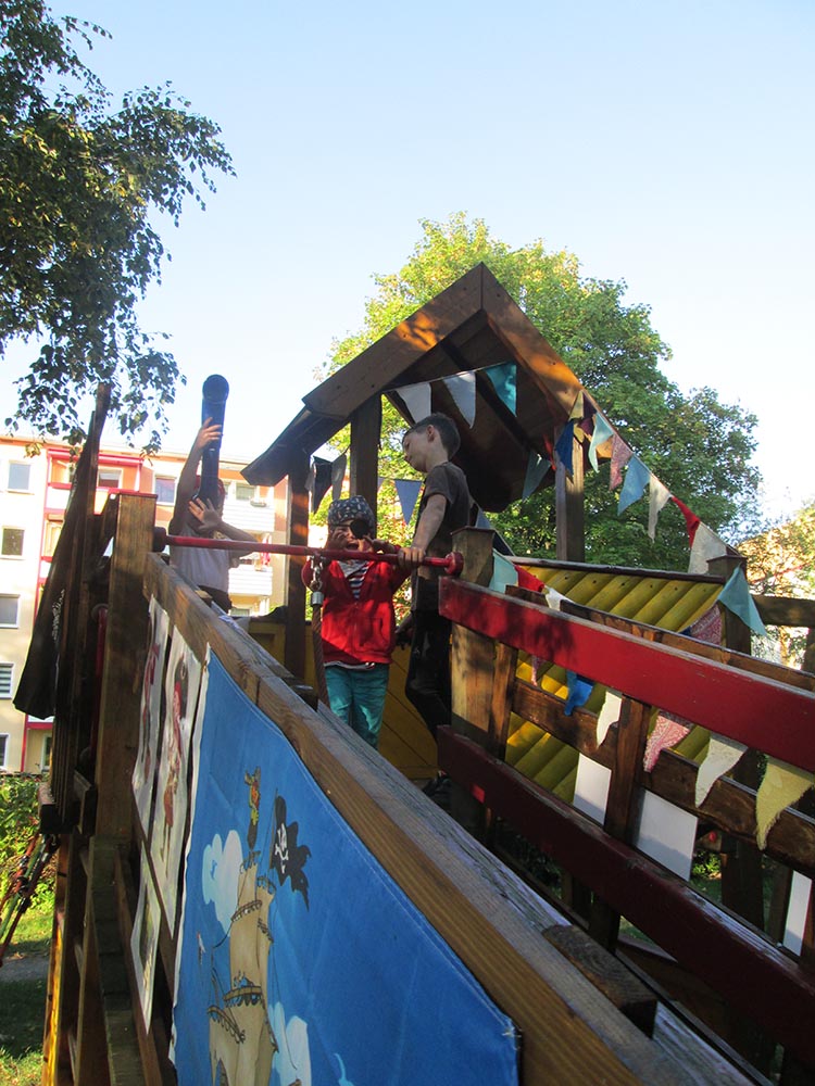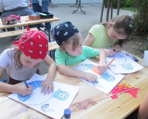 Vor ein paar Tagen wurde unser „Kinderland“ zur Hochburg eines Piratenfestes. Neben musikalischer Unterhaltung durch drei Hortkinder lernte der Kindergarten die Piratenchefin Mathilde und Pepolini Paulina kennen, die unbedingt auch eine Piratin werden wollte. Dabei gab es allerhand zu lachen.