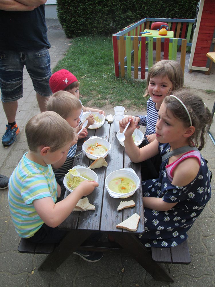Verschiedene Bastel- und Spielangebote sowie eine leckere Fischwürmersuppe mit Schiffszwieback rundeten den spannenden Tag ab. Und der Goldschatz wurde am Ende sogar mit allen Kindern geteilt.