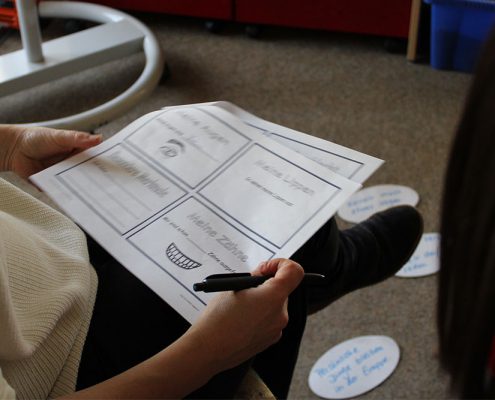 Die Mädchen und Jungen konnten mit Frau Constanze Herold, von der Schwangerenberatungsstelle der AWO in Flöha, Methoden zum Umgang mit eigenen Gefühlen sowie der eigenen Persönlichkeit ausprobieren. Des Weiteren konnten erste Fragen zur Pubertät gestellt werden.