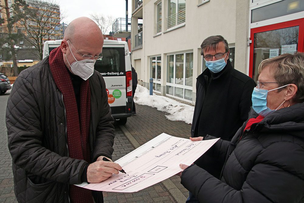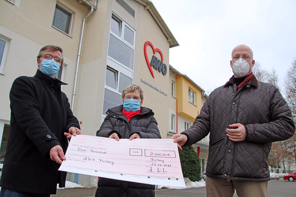 Andrea Riedel und Professor Helmut Mischo vom Rotary Club Freiberg überbrachten am Mittwoch eine Spende von 2000 Euro an den Kreisverband Freiberg der Arbeiterwohlfahrt (Awo). Deren Geschäftsführer Jörg Lehmann nahm die Zuwendung dankend entgegen. „Sie wird für den Bereich Sozialpädagogische Familienhilfe verwendet“, sagte er. Das sei genau das Ziel gewesen, erläuterte RC-Präsident Helmut Mischo. „Gerade jetzt sind viele Familien in einer schwierigen Situation“, sagte er. „Kinder bekommen nicht immer die nötige Förderung.“ Man sei auf der Suche für eine solche Unterstützung gewesen, ergänzte Andrea Riedel. Der Hinweis auf die Awo sei vom Sozialamt der Stadt Freiberg gekommen. Jörg Lehmann bot als Gegenleistung an, in einem halben Jahr bei den Rotariern einen Bericht zu geben, wie die Spende eingesetzt wurde. Das Geld kommt sowohl aus Mitgliedsbeiträgen, als auch aus Verkaufsaktionen. (wjo)