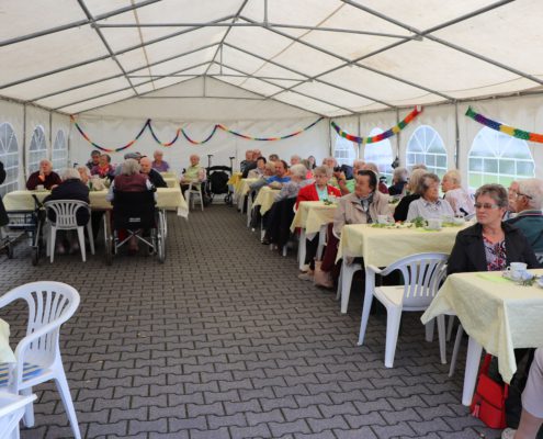 Das AWO-Sommerfest ist Geschichte. An zwei Nachmittagen begrüßte wir unsere Gäste, welche von uns Mitarbeitenden im Bereich des Ambulanten Pflegedienstes, der Kurzzeit- und den Tagespflegen betreut werden. Auch Gäste des Service-Wohnens kamen, um bei Kaffee und Kuchen einen gemütlichen Nachmittag erleben zu können. So wurden unsere Gäste durch den Fahrdienst von zu Hause abgeholt und wieder nach Hause gebracht, unser großes Zelt wurde aufgebaut, dekoriert und das fleißige Team der Küche kümmerte sich um das leibliche Wohl.