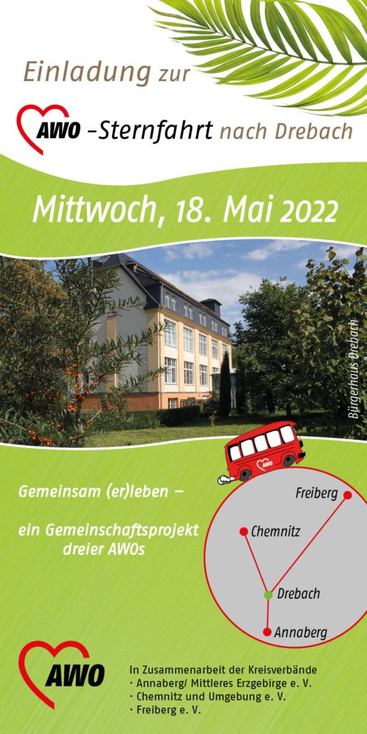 Diese Sternfahrt nach Drebach war bereits anlässlich der 30jährigen Jubiläen der AWO Kreisverbände Annaberg, Chemnitz und Freiberg im Jahr 2020 geplant. Leider konnten wir aufgrund der Situation der letzten beiden Jahre diese Ausfahrt nicht durchführen. Umso glücklicher waren wir, als diesem Event nichts mehr im Weg stand. So starteten die Gäste aus Chemnitz, Annaberg und Freiberg, um im Bürgerhaus Drebach ihrer Einladung zu folgen.