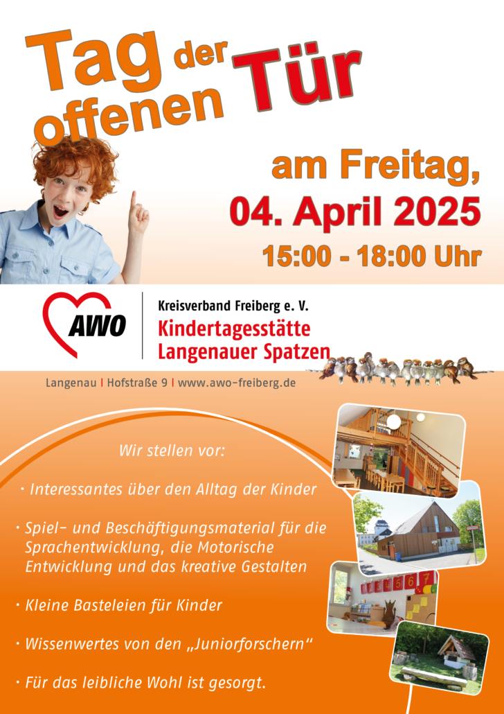 Erlebt mit uns einen spannenden Nachmittag, an dem wir Euch Interessantes über den Alltag der Kinder vorstellen. Ihr habt die Möglichkeit, Spiel- und Beschäftigungsmaterial für die Sprachentwicklung, die motorische Entwicklung und das kreative Gestalten kennenzulernen.