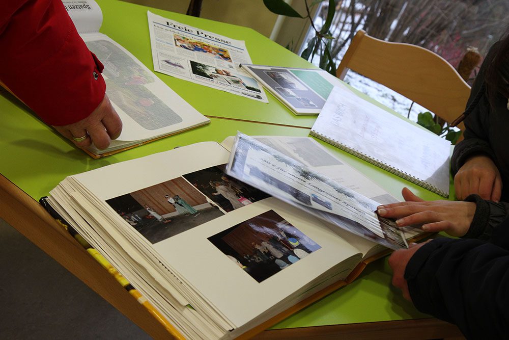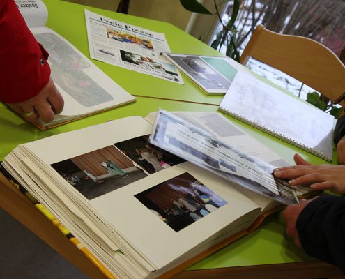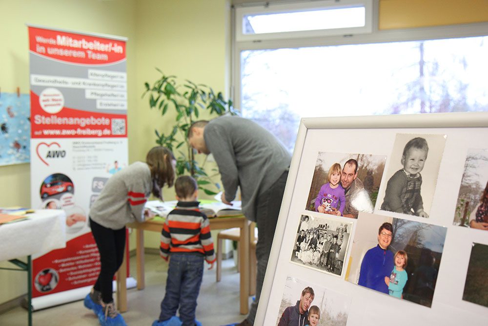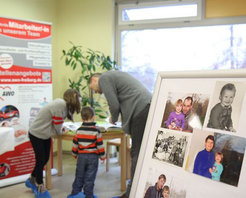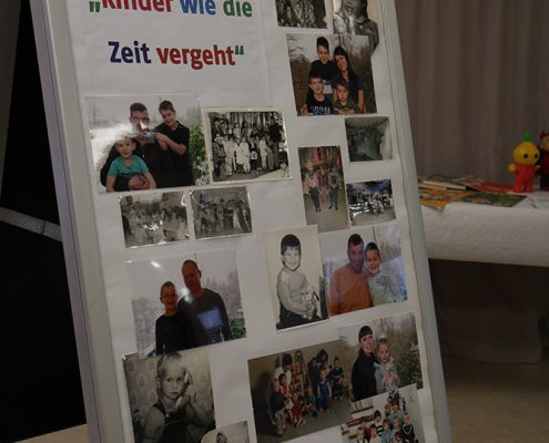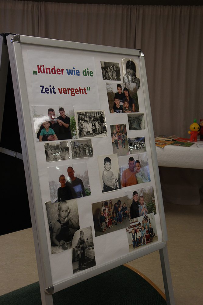 In unserer Ausstellung schwelgte so mancher Gast in Erinnerung an vergangene Zeiten. Eine Fotoausstellung zeigte unsere Kita-Kinder und ihre Eltern zu deren Kindergartenzeiten. Bei einigen Familien konnte man nur aufgrund der schwarz-weiß-Fotos definieren, wer Vater und wer Sohn ist.