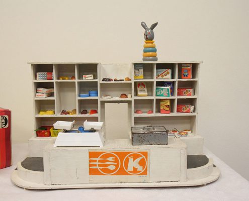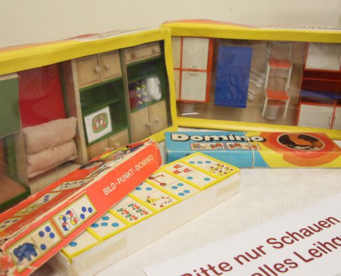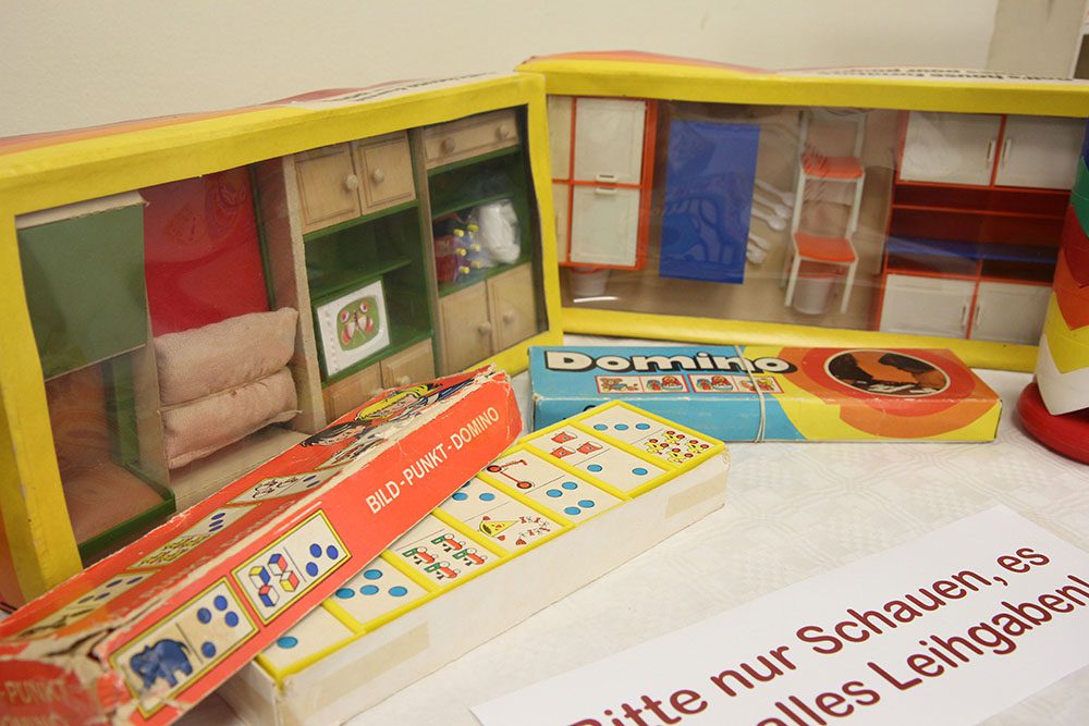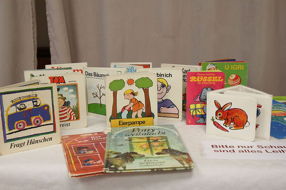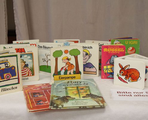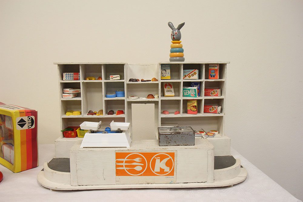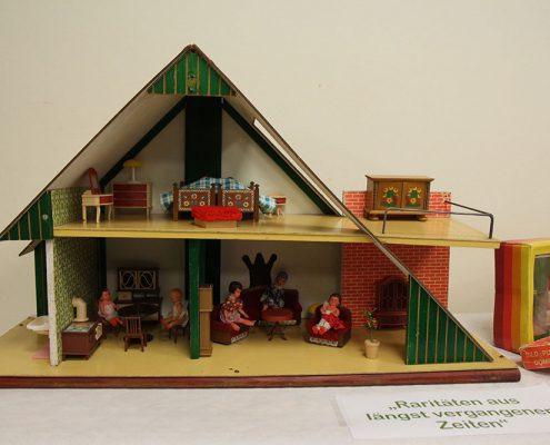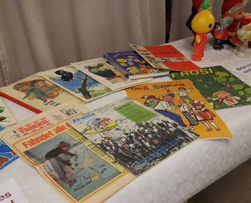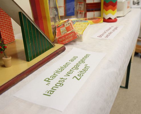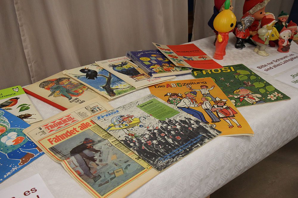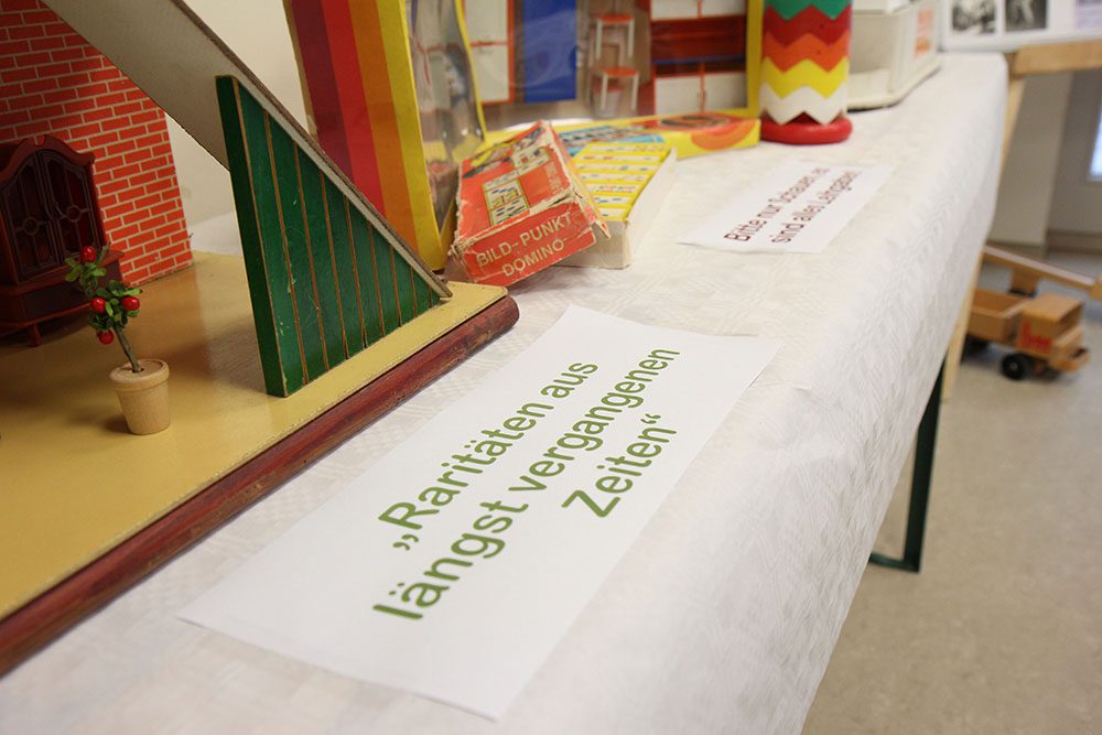Spielsachen und andere Zeitzeugen aus vergangenen Jahren wurden von vielen Eltern für die Ausstellung bereitgestellt. Puppen, Pittiplatsch und Sandmännchen, Puppenstuben, ein Kaufmannsladen, alte Bücher, Zeichnungen… alles, was früher die Kinderherzen höher schlagen lies und wohl heute noch beliebt ist, war zu sehen.