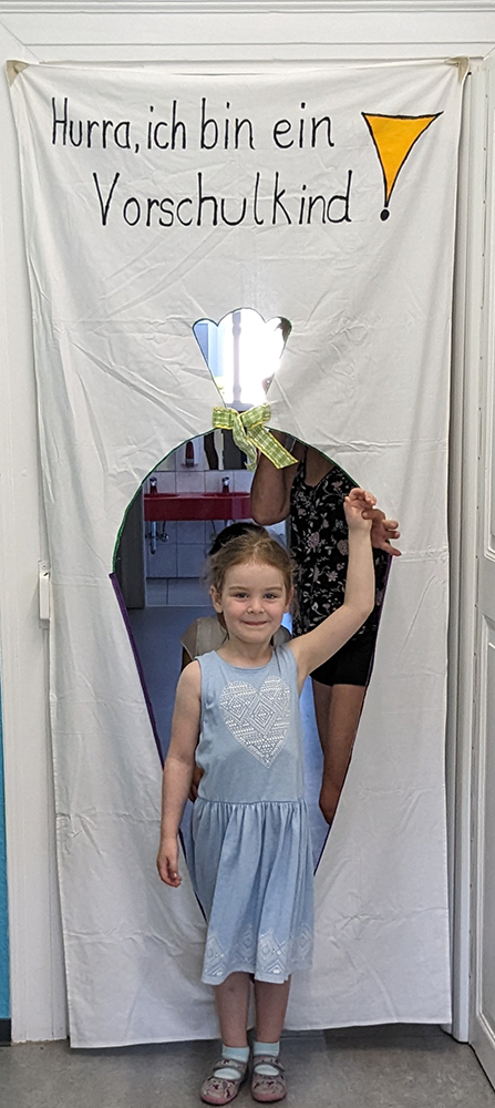 Am 21.08.23, dem ersten Schultag des neuen Schuljahres, wurden unsere neuen Vorschulkinder feierlich im Vorschulzimmer empfangen. Nach dem Schritt durch die Zuckertüte wurde jedem Kind die Vorschulmappe überreicht und alle haben ihre Materialien, wie Stifte und Schere, in ihrem persönlichen Fach verstaut. Die Gruppenerzieherinnen gestalteten liebevoll den Vormittag als ersten Einführungs-und Kennenlerntag für die aufgeregten Kinder. Wir wünschen allen VorschülerInnen ein spannendes Jahr!