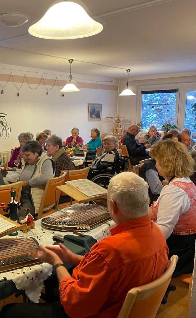 In der Begegnungsstätte Am Forstweg hörte man Weihnachtsmusik vom Duo Zitherklang. Unter dem Motto „Weihnachten im Erzgebirge“ hatten unsere Gäste aus dem Service-Wohnen einen wunderschönen Nachmittag bei Kaffee, Kuchen, Stollen leckerem Abendessen.